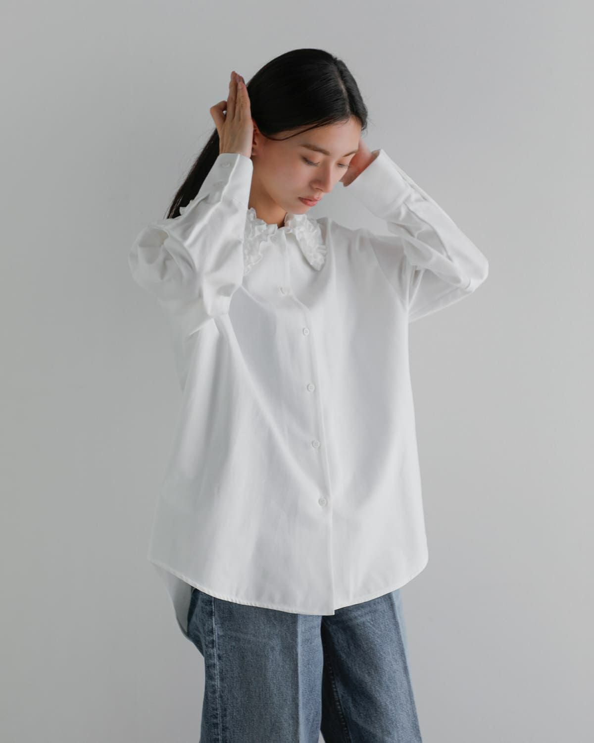 他の画像を見る 春オーバーサイズモードカジュアル上品MANOFフリル襟フリルカラーオックスフォードシャツ MANOF マノフ フリルカラー オックスフォード シャツ 80122-4013 2026ss新作 レディース ¥ 19,800 ¥ 19,800 税込 カートに入れる お気に入りに登録する