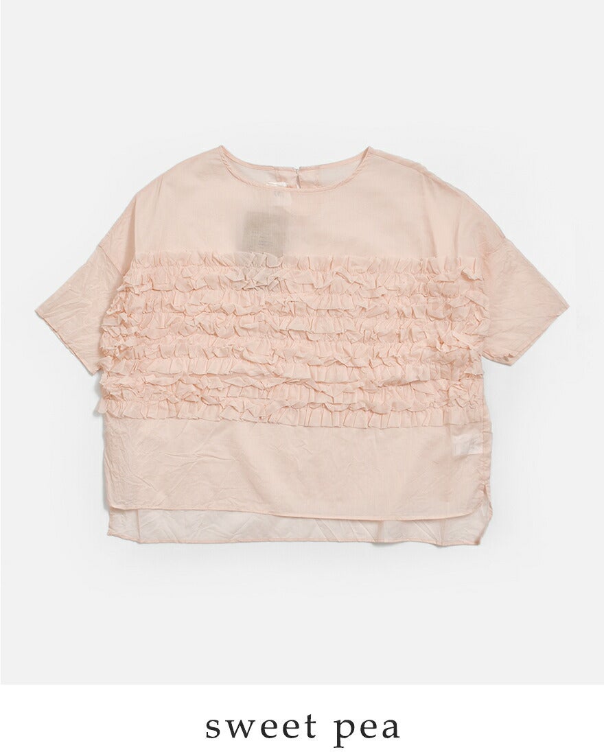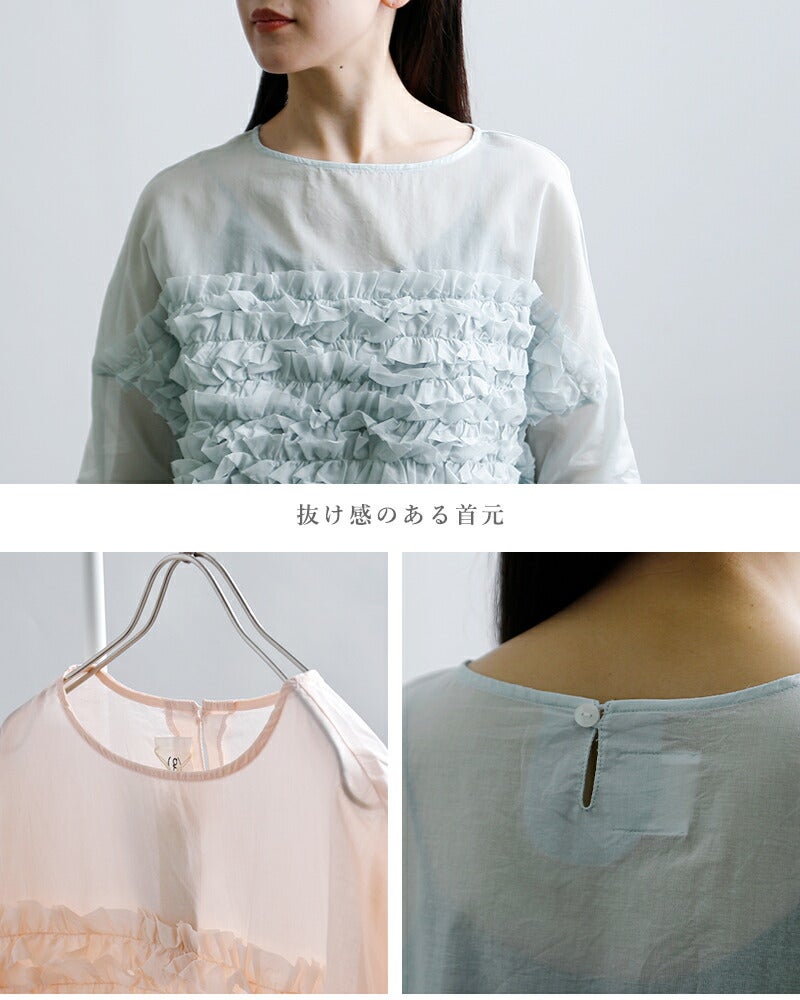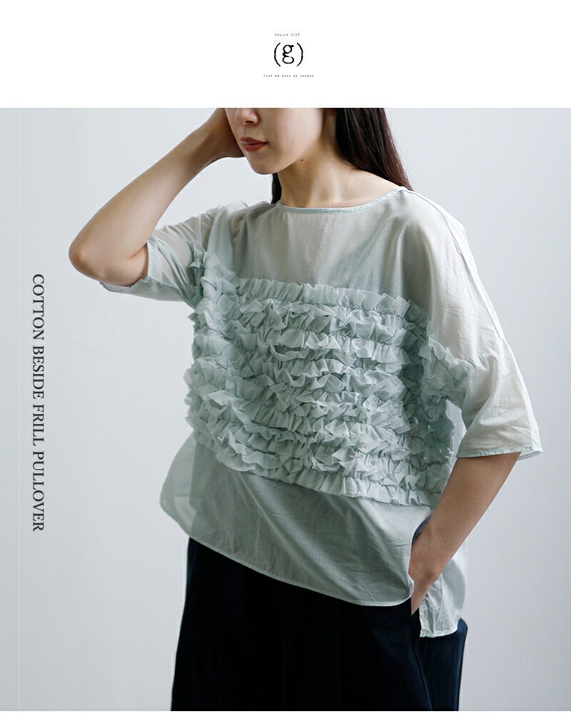 他の画像を見る 胸元に重ねた立体的なフロントフリルが印象的なプルオーバー g グラム コットン ビサイド フリル プルオーバー g-669 レディース 2026ss新作 春夏 ¥ 20,900 ¥ 20,900 税込 カートに入れる お気に入りに登録する