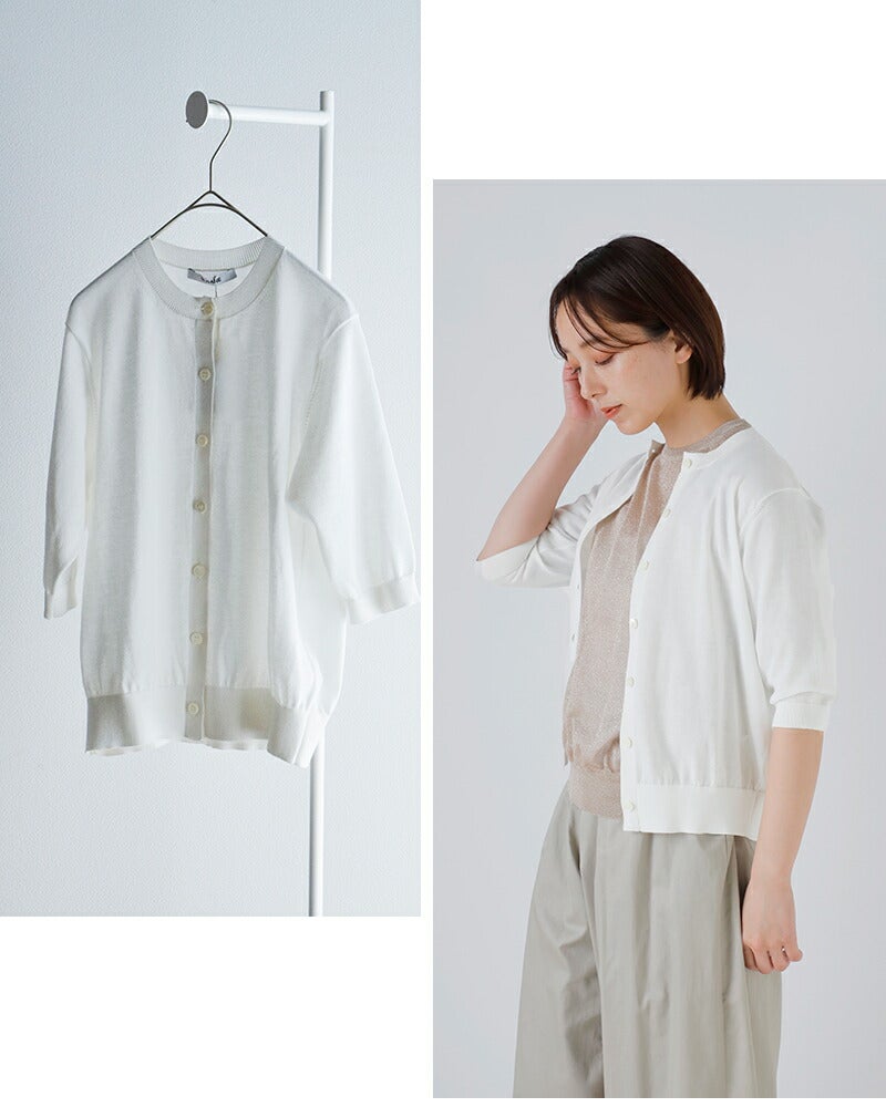 他の画像を見る 16ゲージ天竺編みをフルファッションで丁寧に編み立てた6分袖クルーネックカーディガン SLOANE スローン オーガニックコットン混 6分袖 クルーネック カーディガン sl10s-1078 レディース 2026ss新作 春夏 ¥ 29,700 ¥ 29,700 税込 カートに入れる お気に入りに登録する