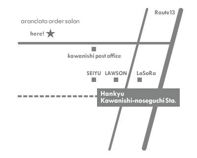 Piu di aranciatoの実店舗となる、アランチェートオーダーサロンは兵庫県川西市にあります。