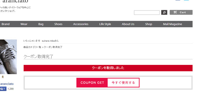 クーポン取得が完了です。店内でご希望の商品をお探しください。