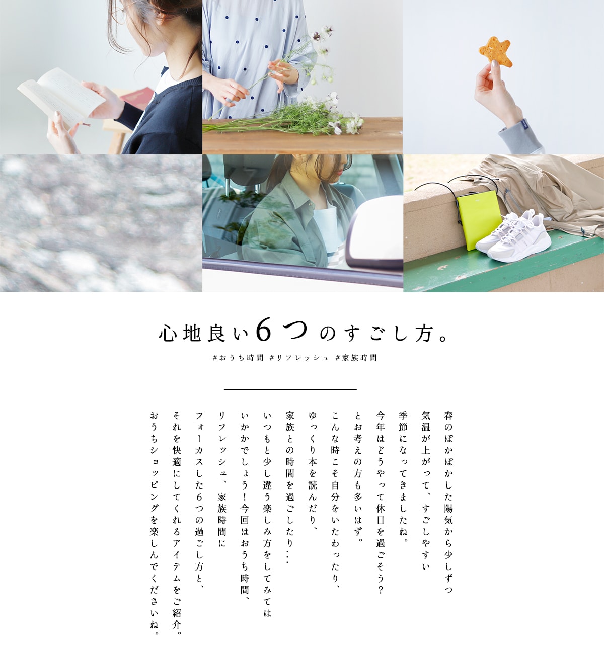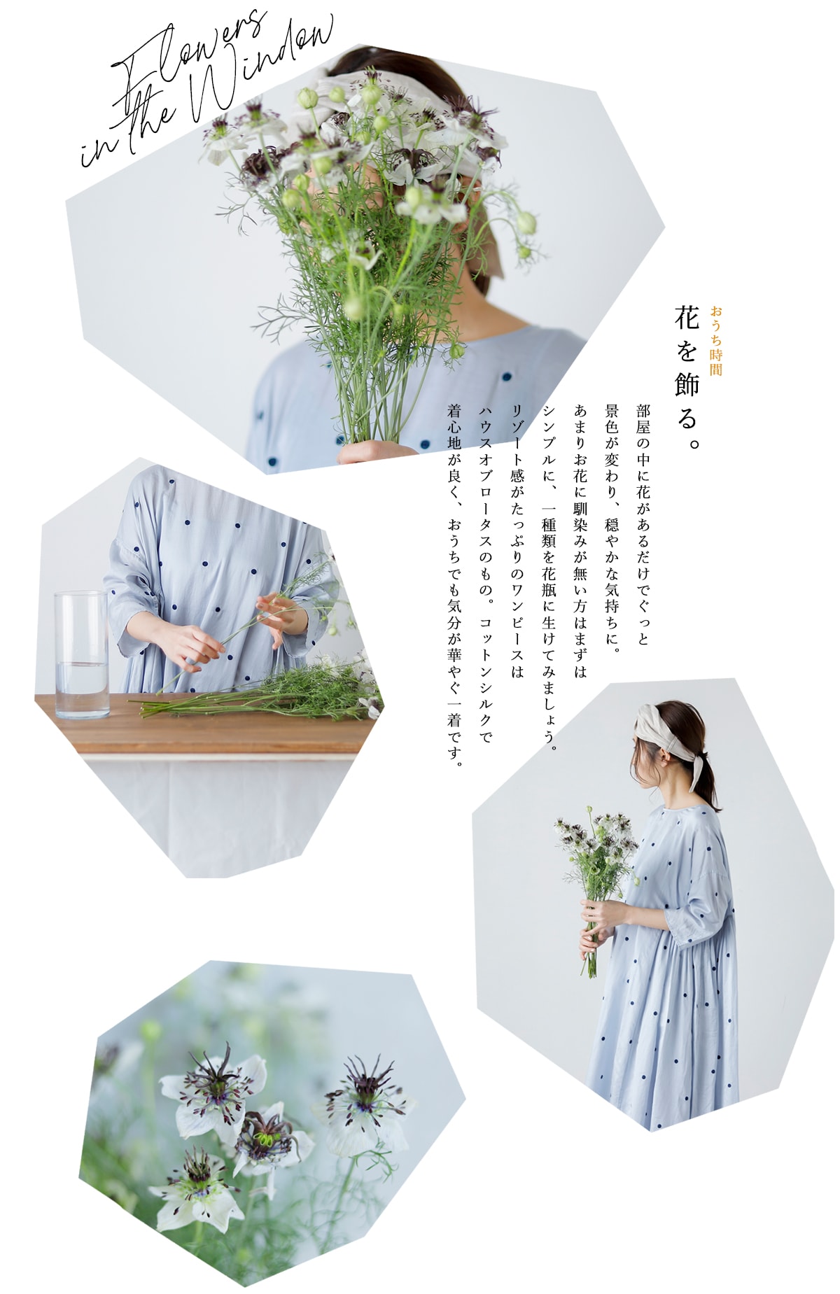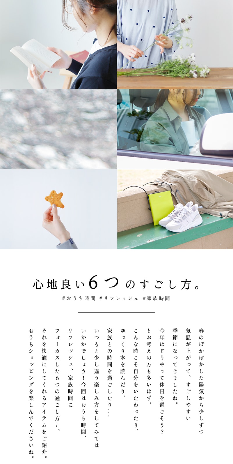 ラフな格好もいいけどたまには綺麗な着こなしをしたいという方はリゾートテイストのワンピースがおすすめ。薄手でリラックス感がたっぷりなので動きやすく快適。花の色に合わせたコーディネートなどお家でもお洒落を楽しんで。