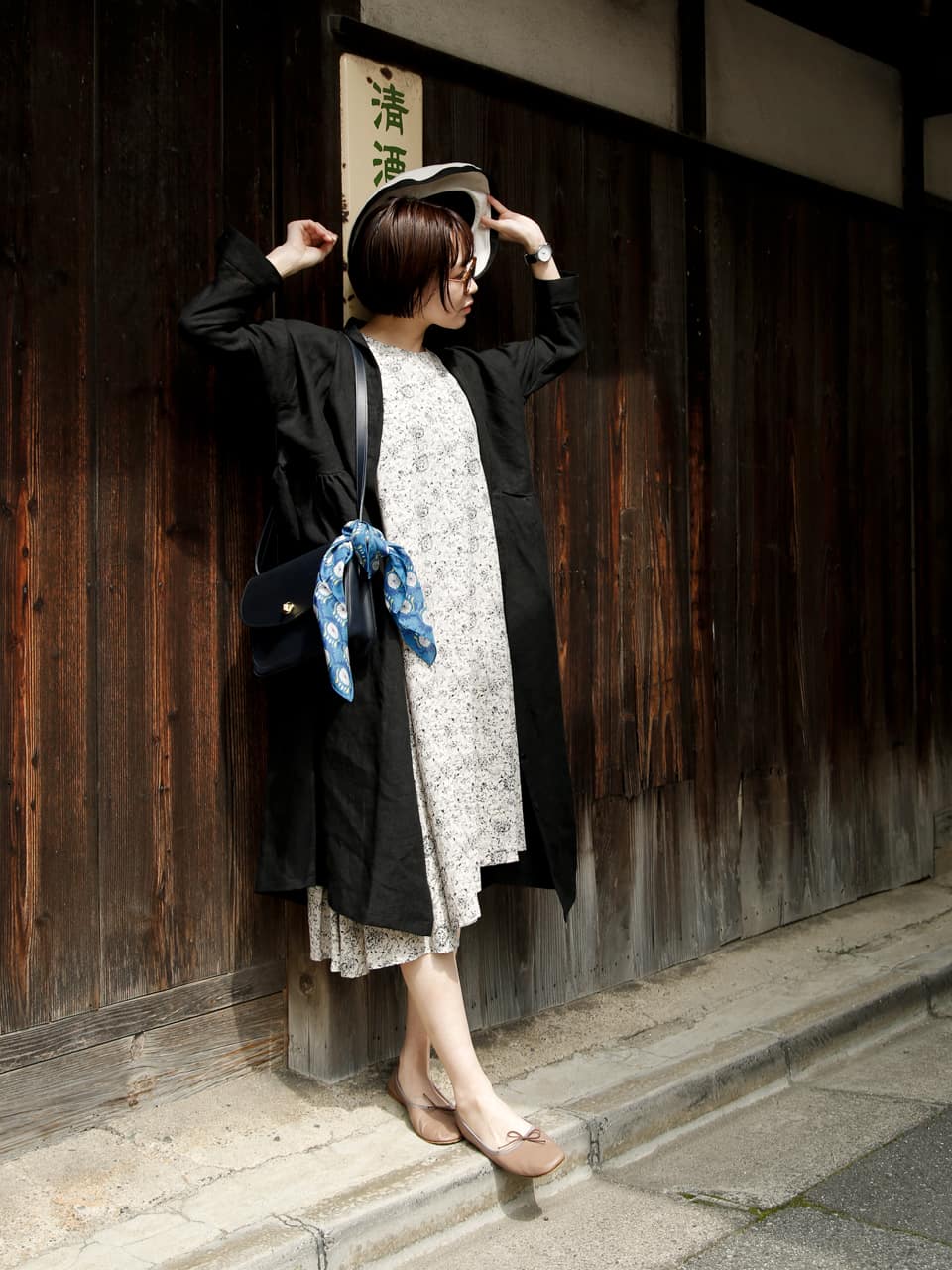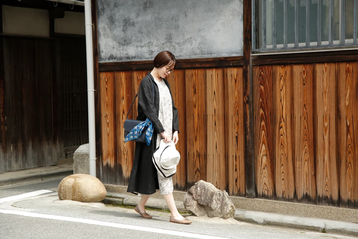 少し車を走らせて都会から離れたスポットを散歩。今まで知らなかった歴史に触れたり、新しい発見があるかも。カジュアルになりすぎないワンピーススタイルは上質な革小物を取り入れるのがポイント。リネン素材のワンピースコートは今の季節に重宝します。