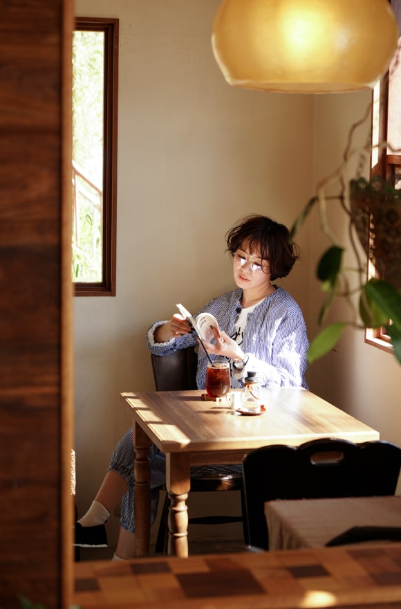 こんなときだからこそ一人の時間を楽しむのも大切。行きつけのカフェに行って手が付けれていなかった本を読んだり、美味しいコーヒーや食事を取ったり..スローな時間を心地よい空間で味わうのが何よりの贅沢。近所だけれどあえて少し気取ってセットアップスタイルで、なんてのもいいですね。