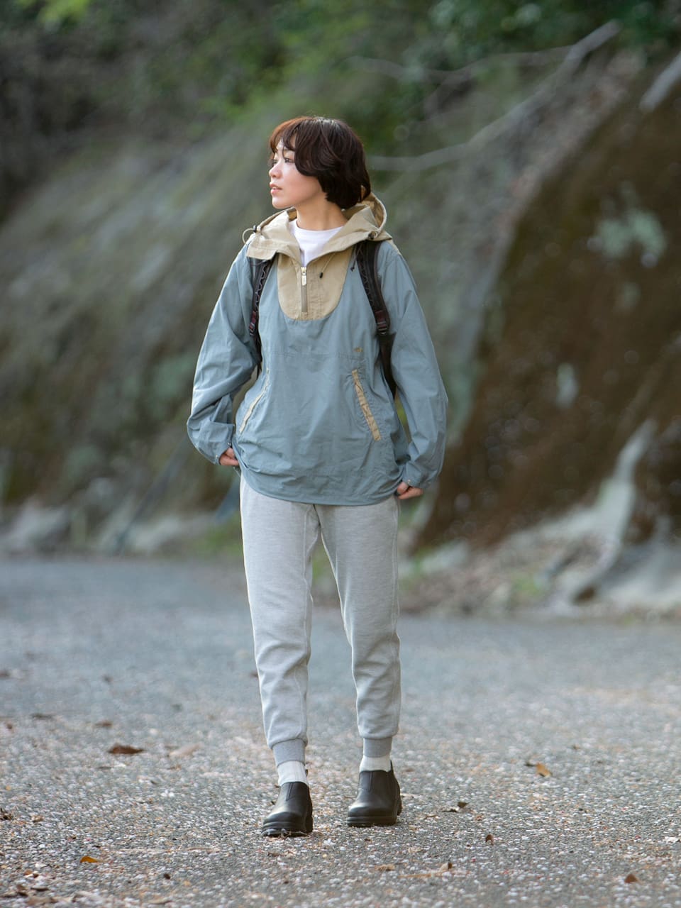 自然をたくさん感じられる山歩きは少し早起きで。静けさと心地よい空気で日々の疲れをリフレッシュできます。急な雨や山の寒さ対策にアノラックジャケットが大活躍。山に強いグラミチとタフなブランドストーンで、スタイリッシュだけど機能性も◎