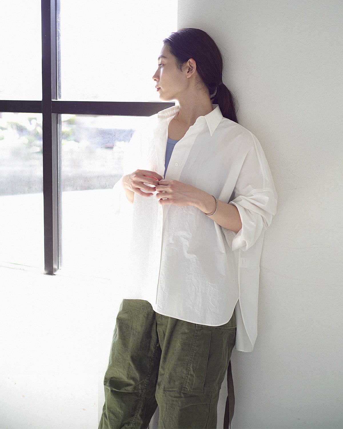 身幅も袖幅もゆとりを持たせたサイジングで、大きく肩が落ちるビッグサイズなシャツ。ざっくりとした雰囲気がリラックスしたムードを演出できます。