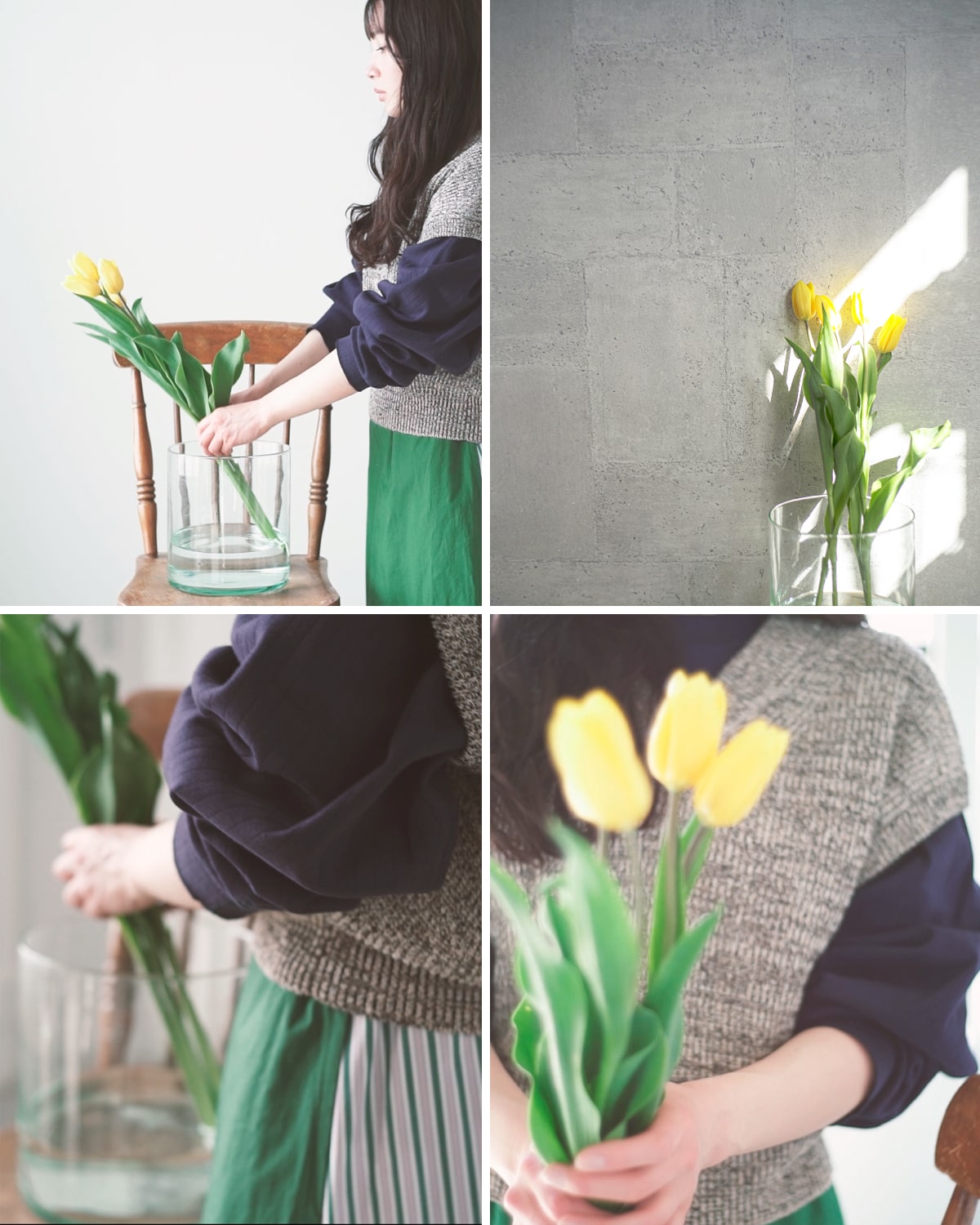 やわらかで優しい肌ざわりが嬉しく春らしくハリのある素材感。ジャケットなどに合わせて程よい崩しにも使える優秀なアイテム。