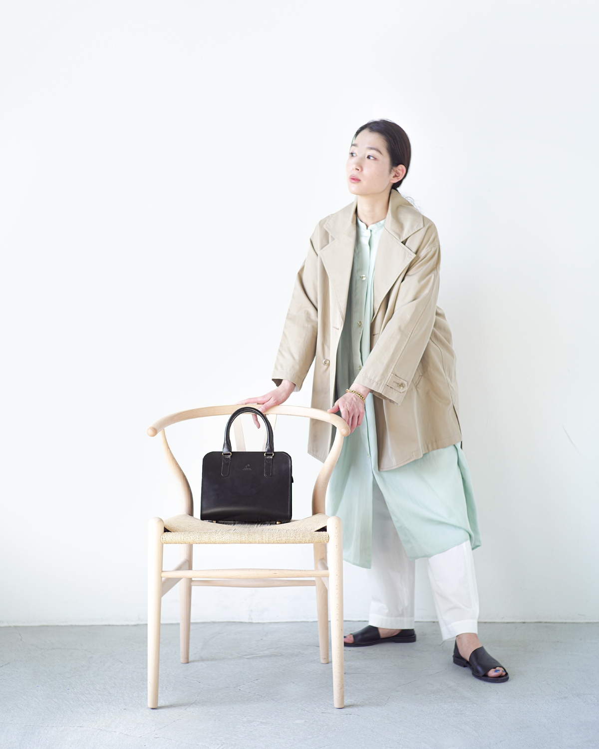 スクエア型の上品なフォルムにしっかりとマチを備え収納力もばっちり。スーツやきれいめなワンピースとも相性よく、オケージョンスタイルにも合わせやすさ◎。