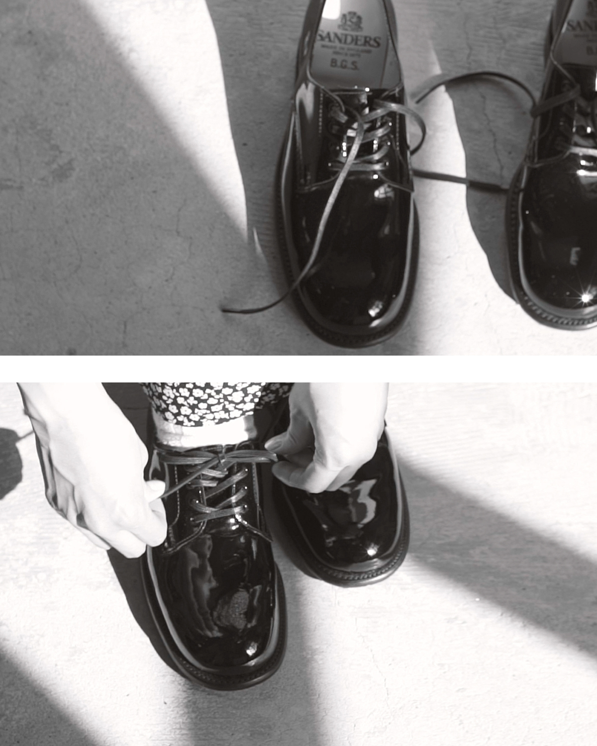 マットな光沢感が美しい羊革を使用したハンサムな表情のシューズ。マイケル・ジャクソンのシューズをオマージュされて作られた一足。