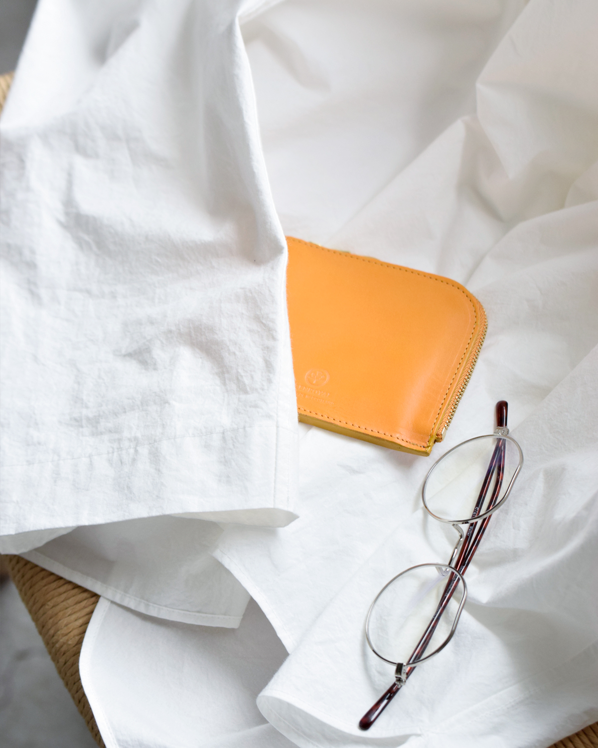 スタイリッシュながま口タイプで手に馴染む柔らかさと、キメが細かく爪傷がついても擦ると消える上質なレザーの質感が魅力。