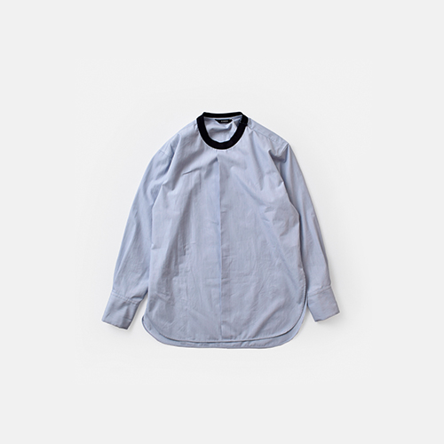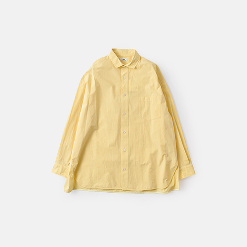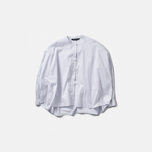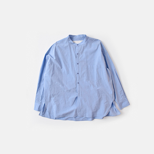 TICCA の定番、スクエアビッグシャツのノーカラーバージョン。クラス感のあるコットンの生地でリとコシを味わえる一枚。