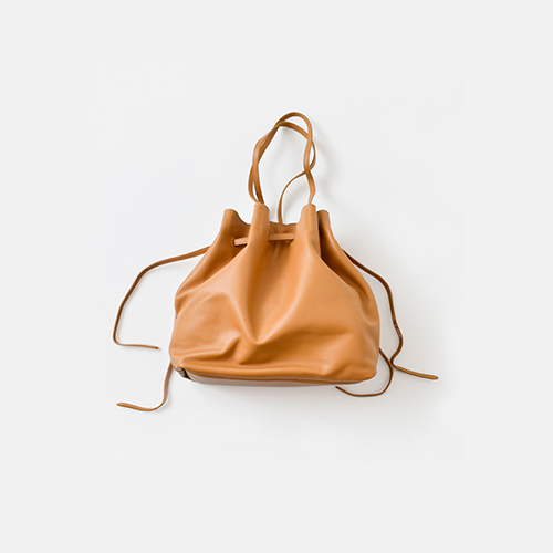荷物の量に応じてトートにも巾着にも変化する2WAYバッグ。美しい艶めきを放つ上質なレザーがこなれた大人の雰囲気に。