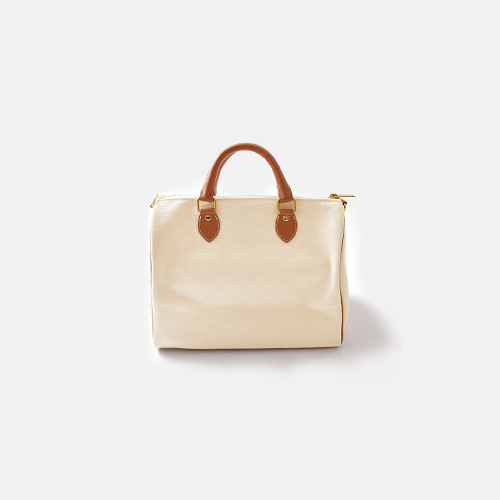 生成りがかったキャンバス素材と滑らかなステアレザーを使用した上品なボストンバッグ。ヴィンテージを思わせるような佇まいがこのブランドらしい仕上がり。