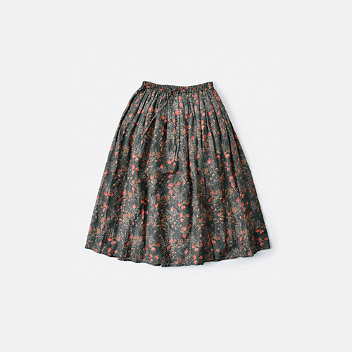 美しく軽やかな、シルクコットンを使用したスカート。どこかレトロで甘すぎない花柄は合わせるアイテムを選びません。
