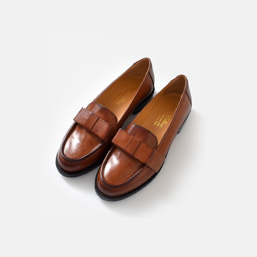 上品なラインと細やかな部分に靴職人のこだわりが感じられるリボンローファー。アッパーにリボンを施す事で固い印象になりすぎず、程よいガーリーさがポイント。