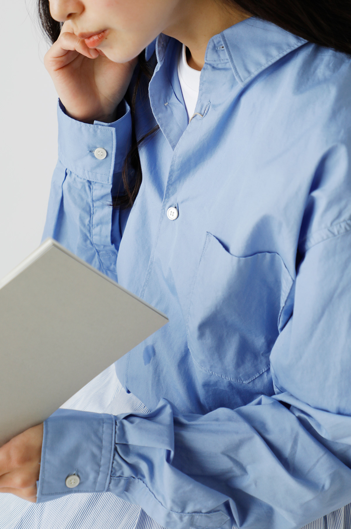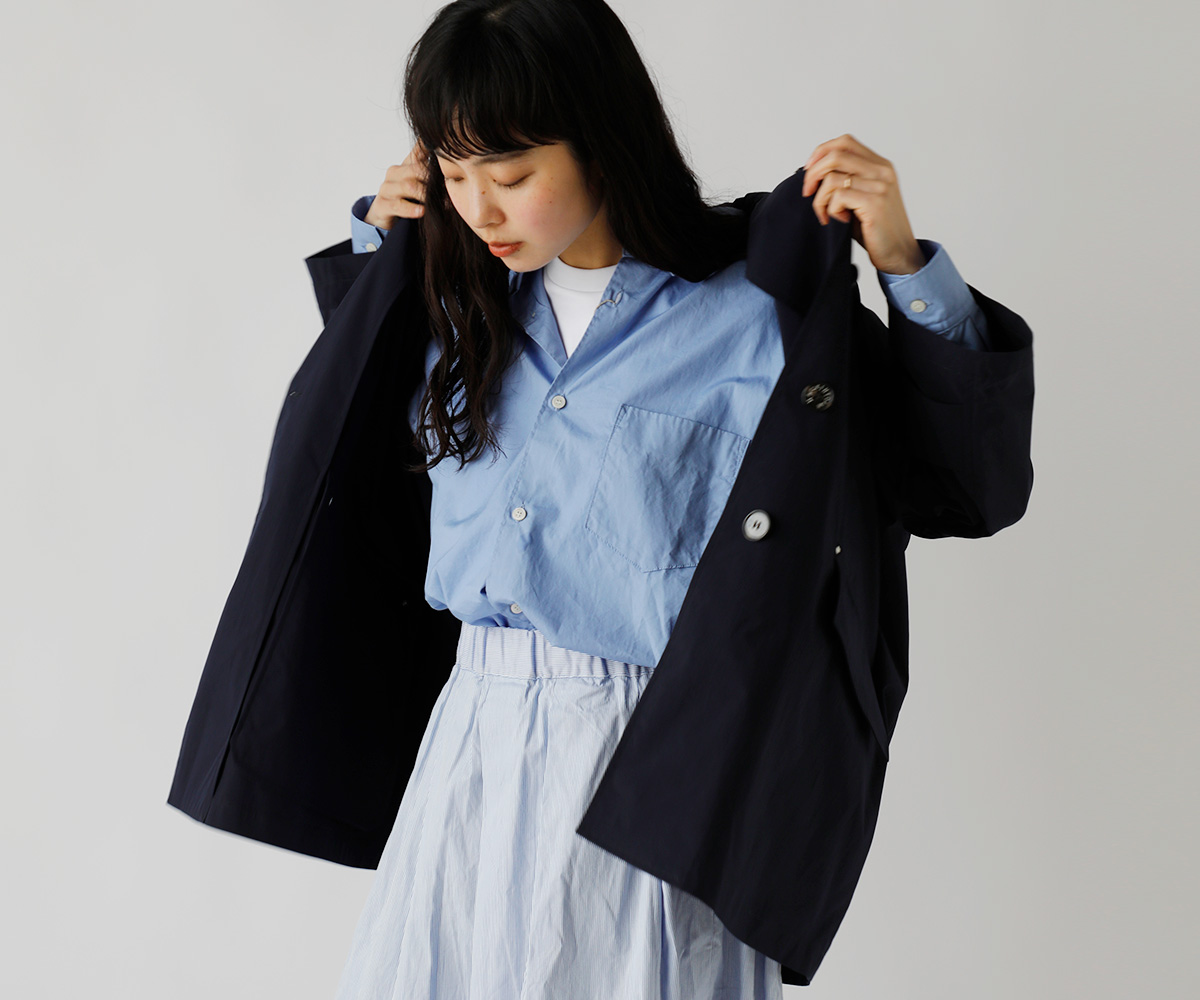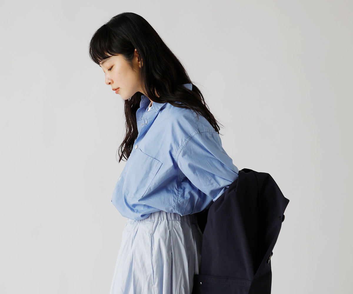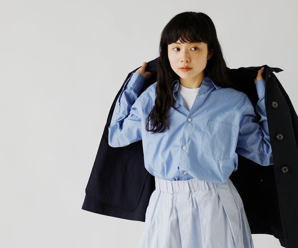 春はやっぱりシャツが着たい。今着るなら光沢感と高級感が特徴の「ブロード生地」がおすすめ。ドレスシャツに良く使われる素材なので、洗いざらしでも上品。パリッと引き締まった表情なのでボトムスを柔らかい素材にすればスタイリングに奥行きが生まれます。