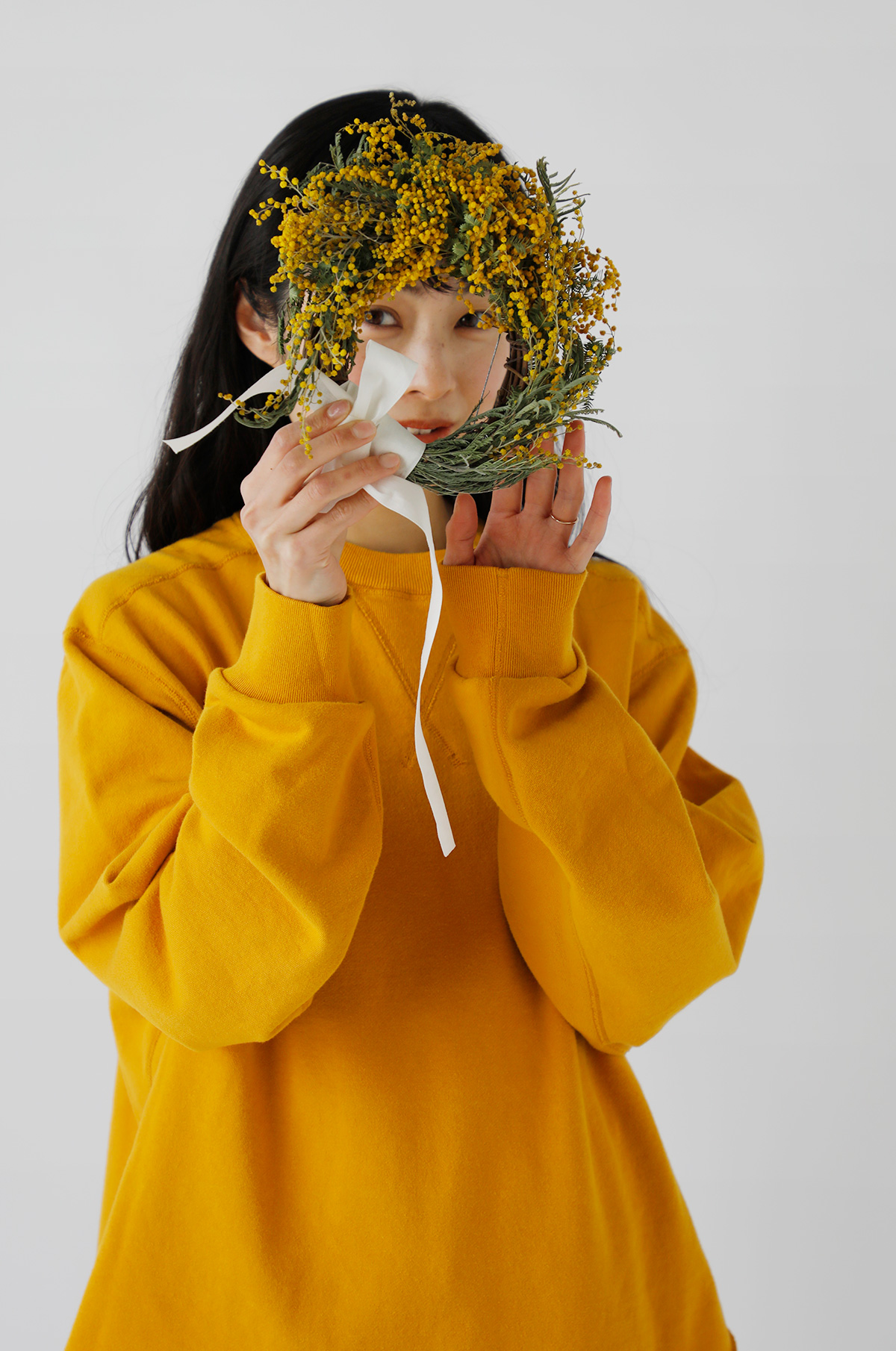 イエローは春らしさたっぷり。抵抗がある方は彩度を落としたものを選んでカーキと同じ感覚で合わせればOK。