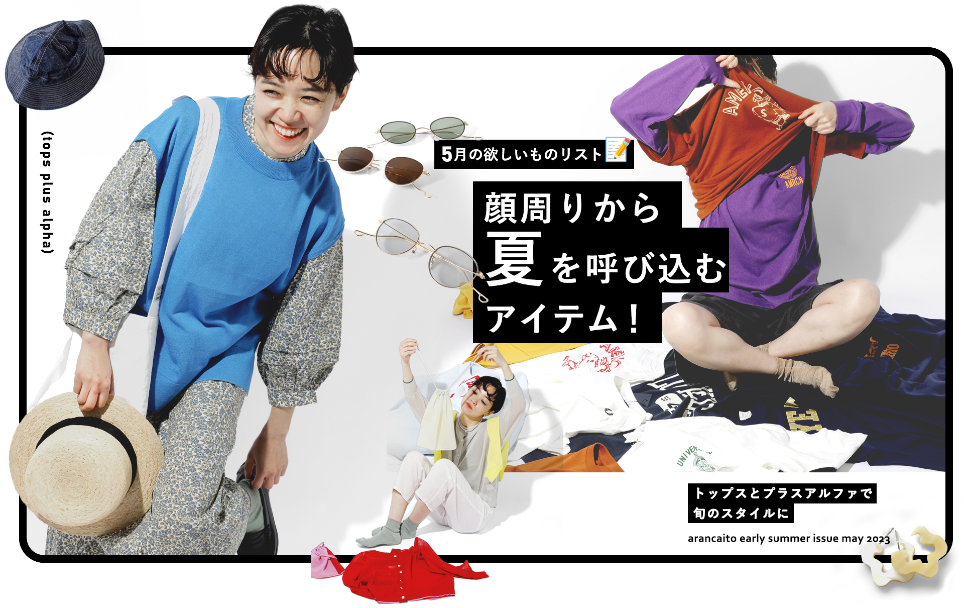 GWが明けて、夏がまた一歩近づいてきました。5月の欲しいものリストをピックアップすると、楽しい夏を予感させる、Tシャツや軽やかな羽織などのトップスが上位を独占!さらにハットやアクセやアイウェアなど、日差しに映えるアイテムを添えて、この夏の装いを作っていきませんか?今回はおすすめのトップスに、プラスアルファのアイテムをピックアップしてご紹介いたします。