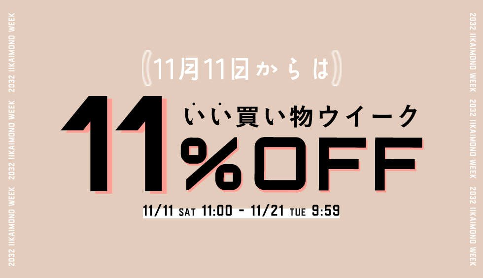 あっという間に11月も半ば。気温もぐっと下がり冬の寒さもいよいよ本番ですね。 さて11月11日からは毎年恒例、”いい”買い物ウイーク!21日(火)9:59までの期間限定で11%OFFクーポンイベントを開催いたします! 暖かなアウターやニットなどこの冬のアイテムはもちろん、世界中から厳選した”いい”ものがたくさん揃っております。まとめ買いのチャンスをお見逃しなく♪