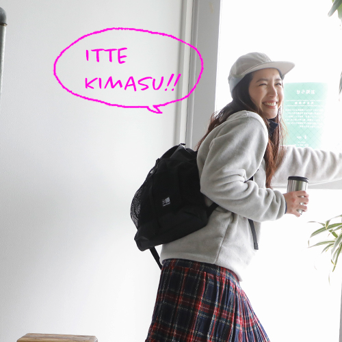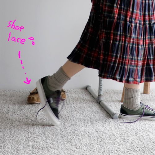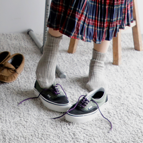 足元はもちろんスニーカーで。ヴァンズの配色がかわいい一足をチョイスしました。軽快な足取りで『いってきます!』
