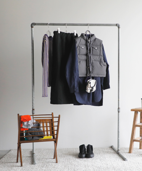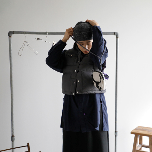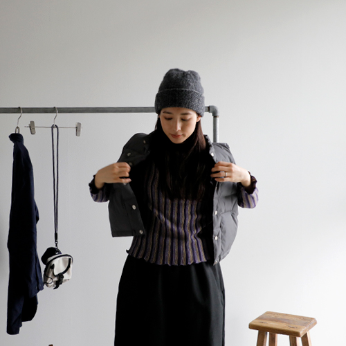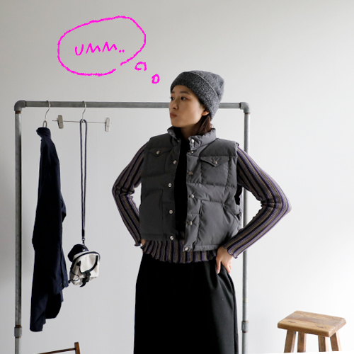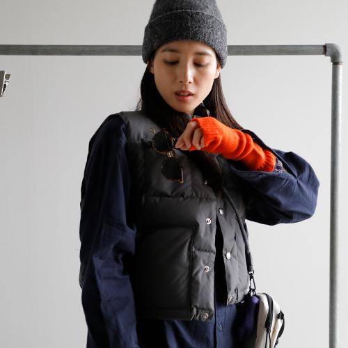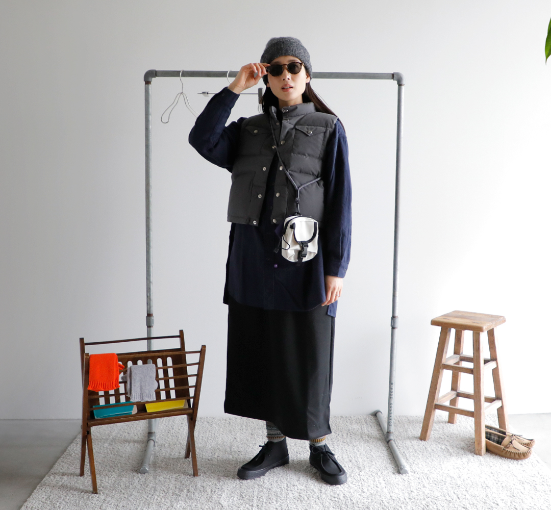 ショート丈のダウンベストで、トレンド感を取り入れたい。インナーには、お気に入りのストライプのニットとのレイヤードも大好きで捨てがたいけど、少し寒いからもう一枚シャツを重ねて。すとんとしたシャツのラインとスカートのIラインスタイルに、ショートベストを重ねたメリハリ感がグッドな装いに仕上がりました。小物選びもぬかりなく。配色がかわいいポーチバッグ。アームウォーマーはアクセントカラーを。ソックスにはさりげなく柄を。サングラスはかわいいけど少しやりすぎかな?と心配しつつ、ポッケに忍ばせて出発です!