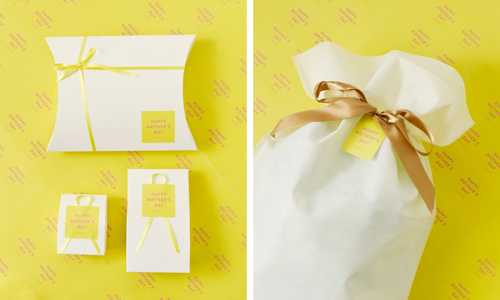 お買い物の際、【お支払い方法選択】画面の【のし・ギフト包装】の「変更」をクリックした先のプルダウンメニューより「母の日ラッピング」を選択のうえ、「設定」をクリック。このままご注文いただくと、ギフトラッピングされた商品をお届けいたします。