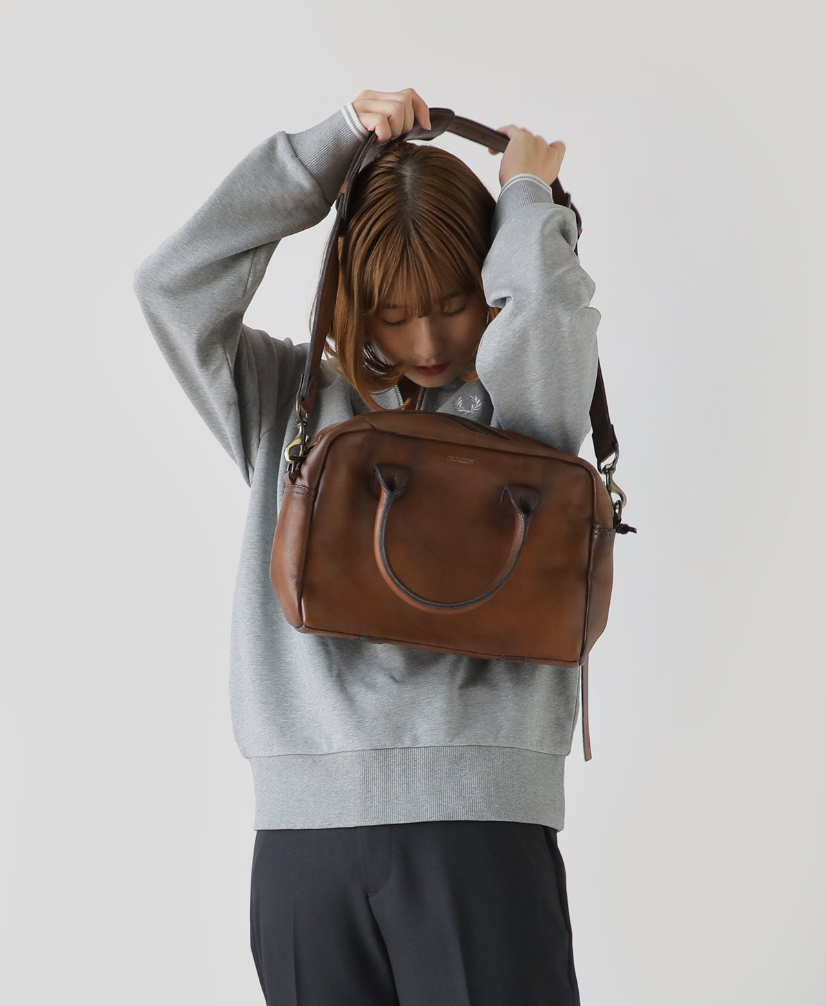 フランスより届いたレザーの風合いを活かしたレザーバッグ。一目見て、大事に使い続けたいと思えるようなそんなヴィンテージ感溢れる佇まい。