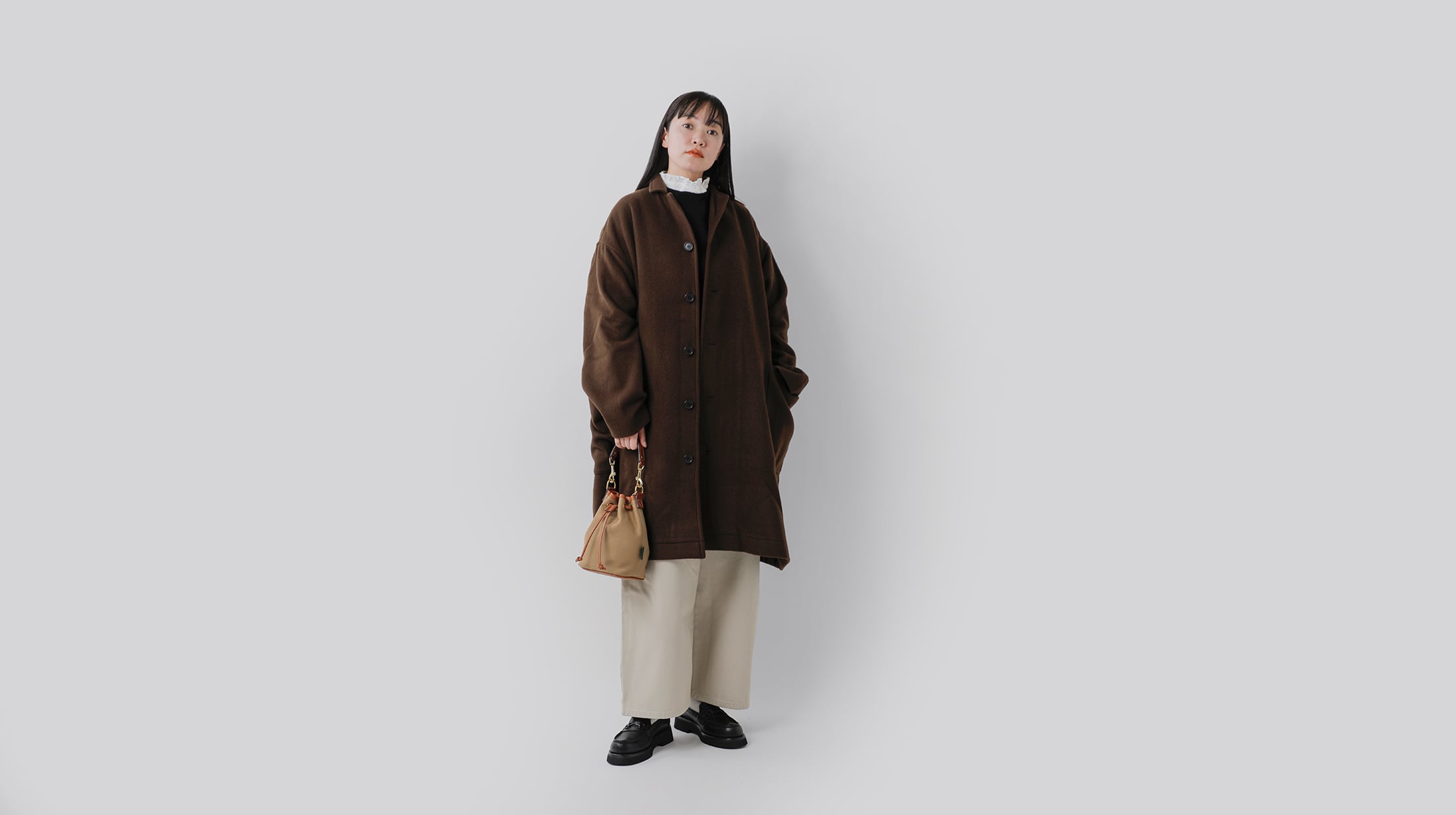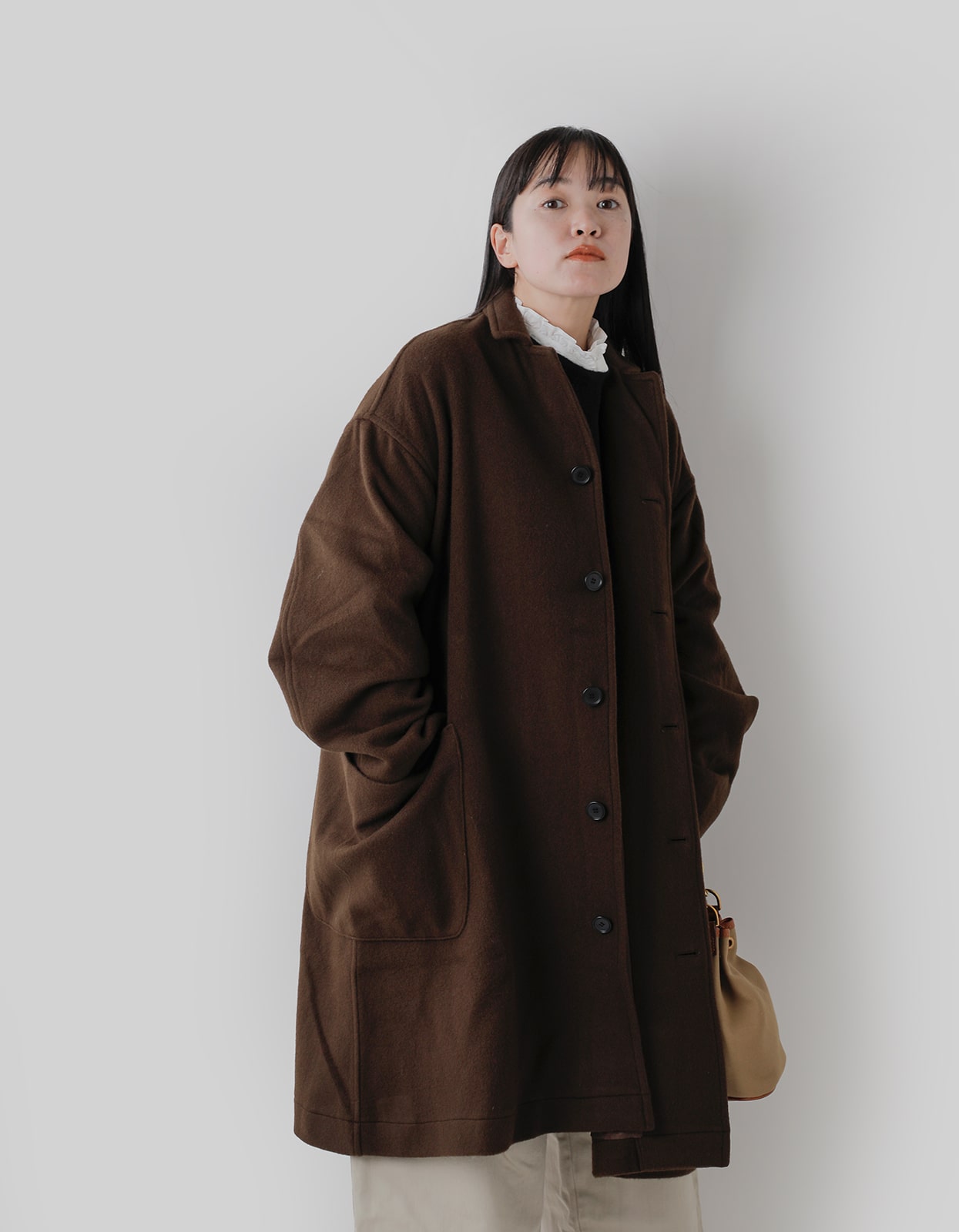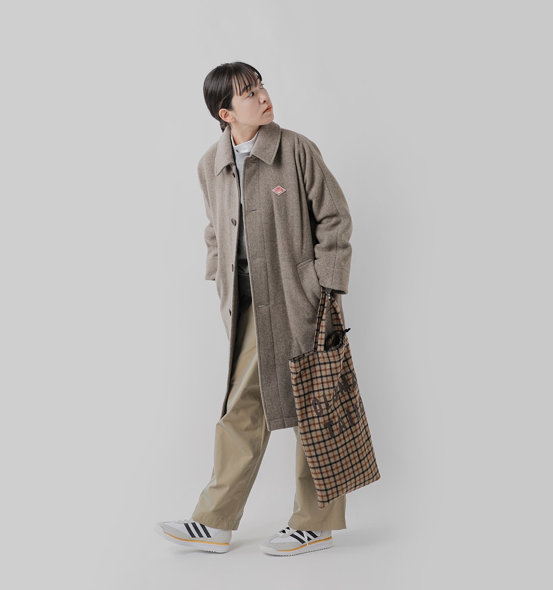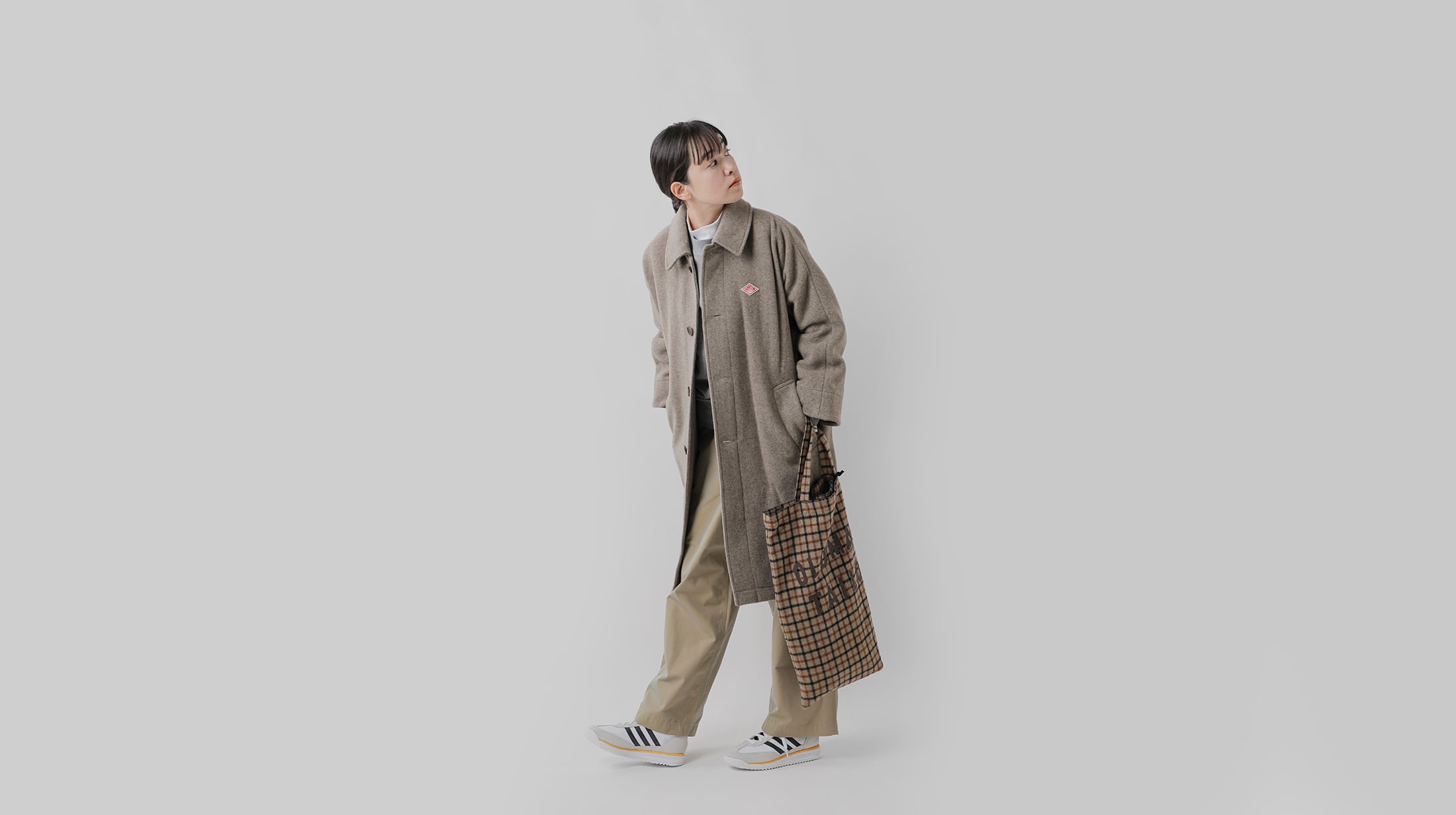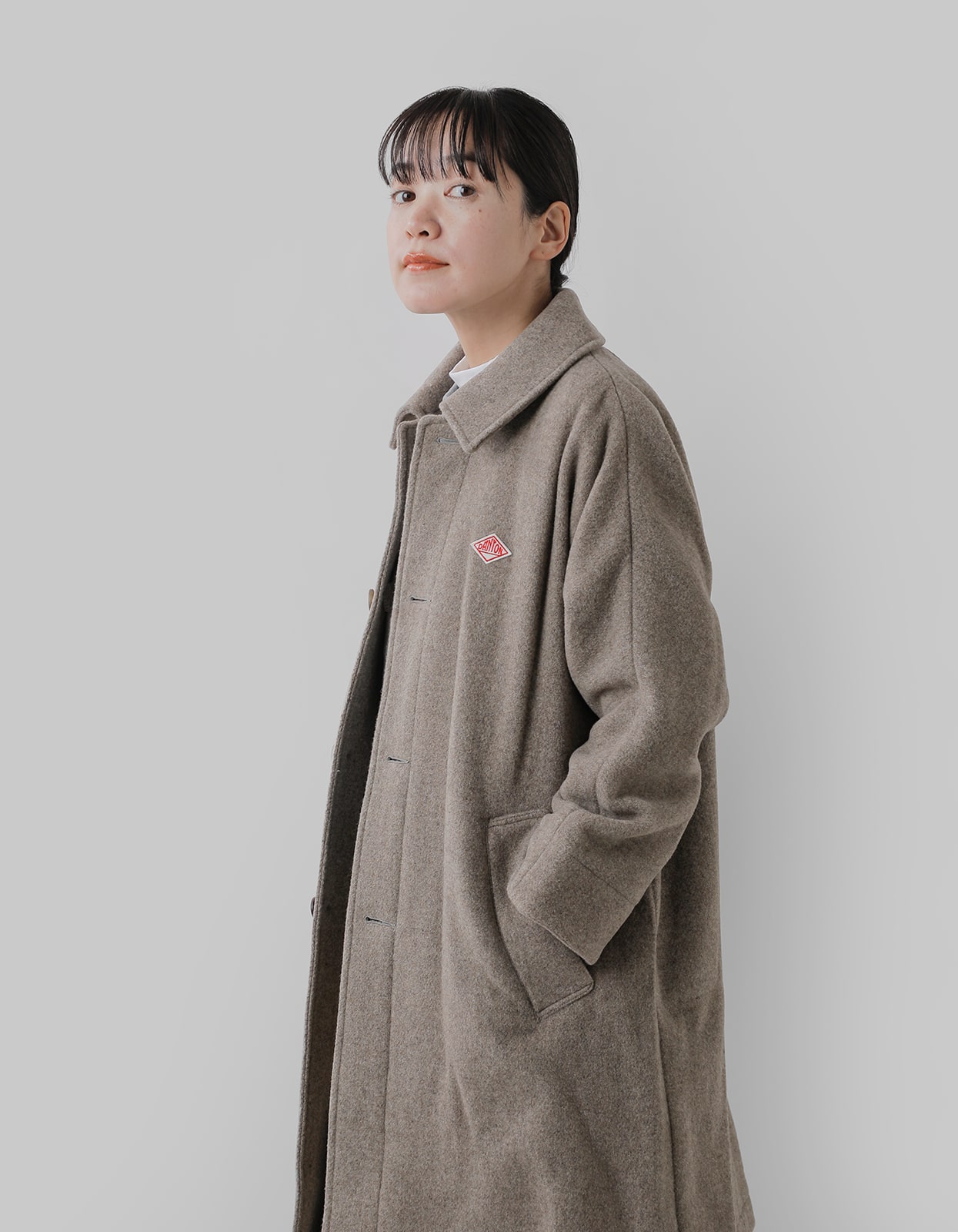リラックス感のあるシルエットで楽な着心地がありながらも、こなれ感を演出するDANTONダントンのドルマン袖のロングコート。バックのギャザーが印象的。ウールパイルよりも糸番手を細くして軽やかで着心地に優れた仕上がりです。重たくなりがちな冬のロングコートですが、軽やかに着られるこちらの一枚で、寒い季節のおでかけも心躍りますね。
