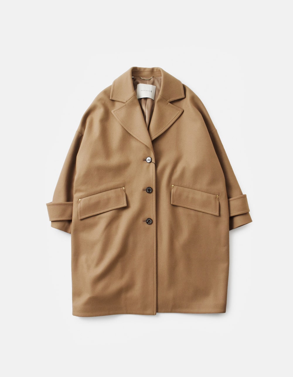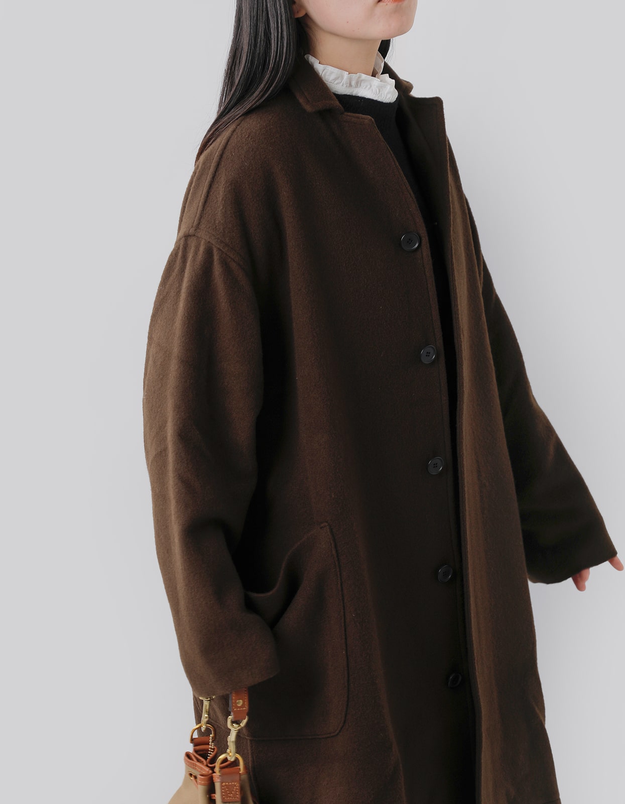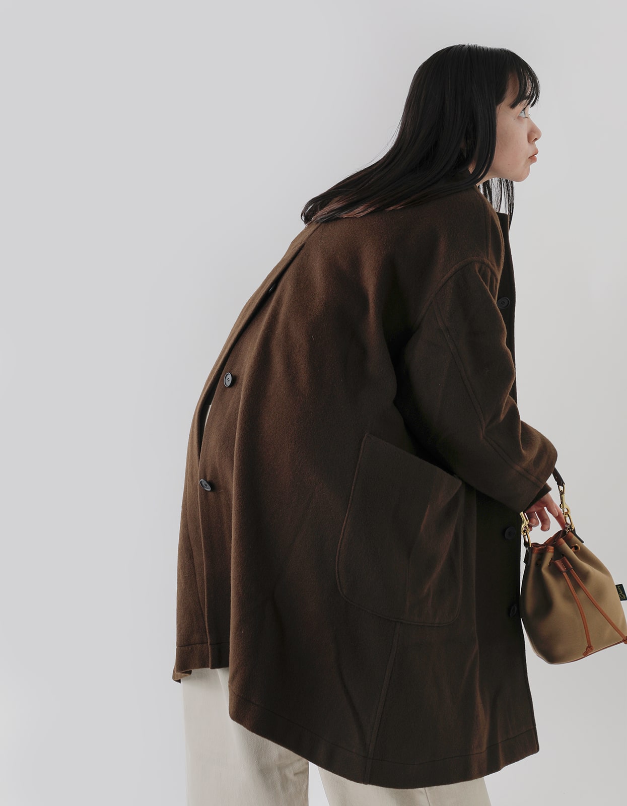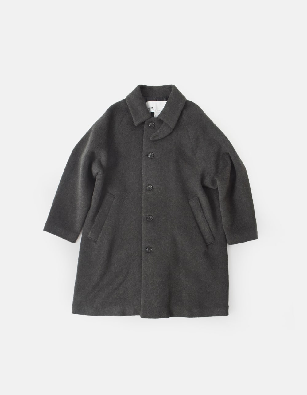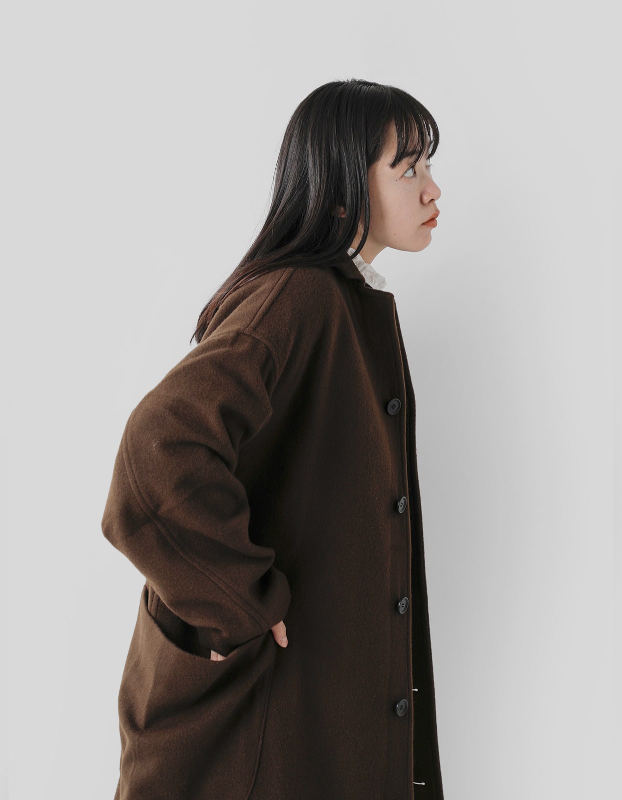 リラックス感のあるシルエットで楽な着心地がありながらも、こなれ感を演出するDANTONダントンのドルマン袖のロングコート。バックのギャザーが印象的。ウールパイルよりも糸番手を細くして軽やかで着心地に優れた仕上がりです。重たくなりがちな冬のロングコートですが、軽やかに着られるこちらの一枚で、寒い季節のおでかけも心躍りますね。