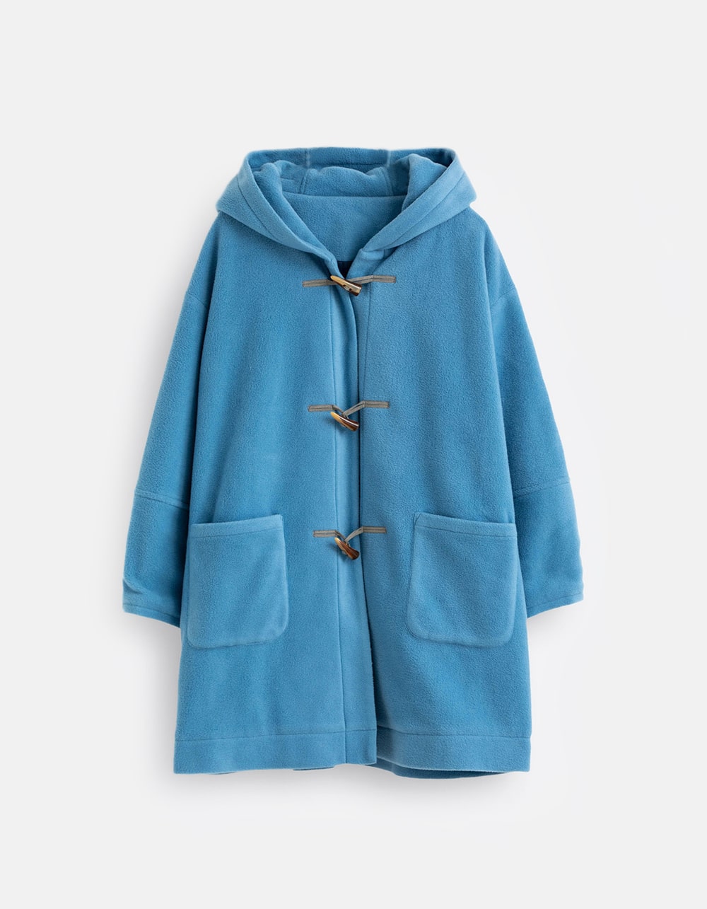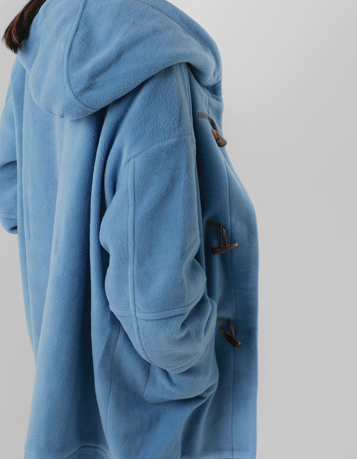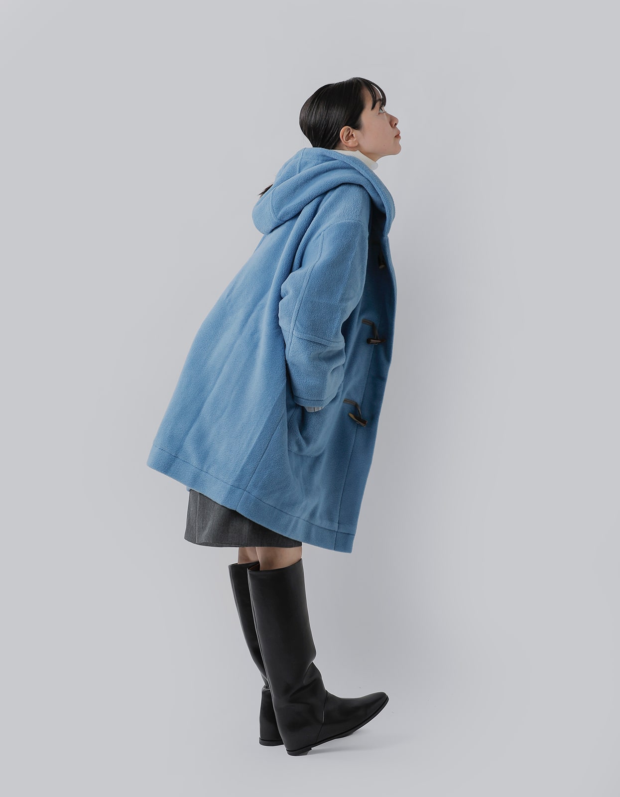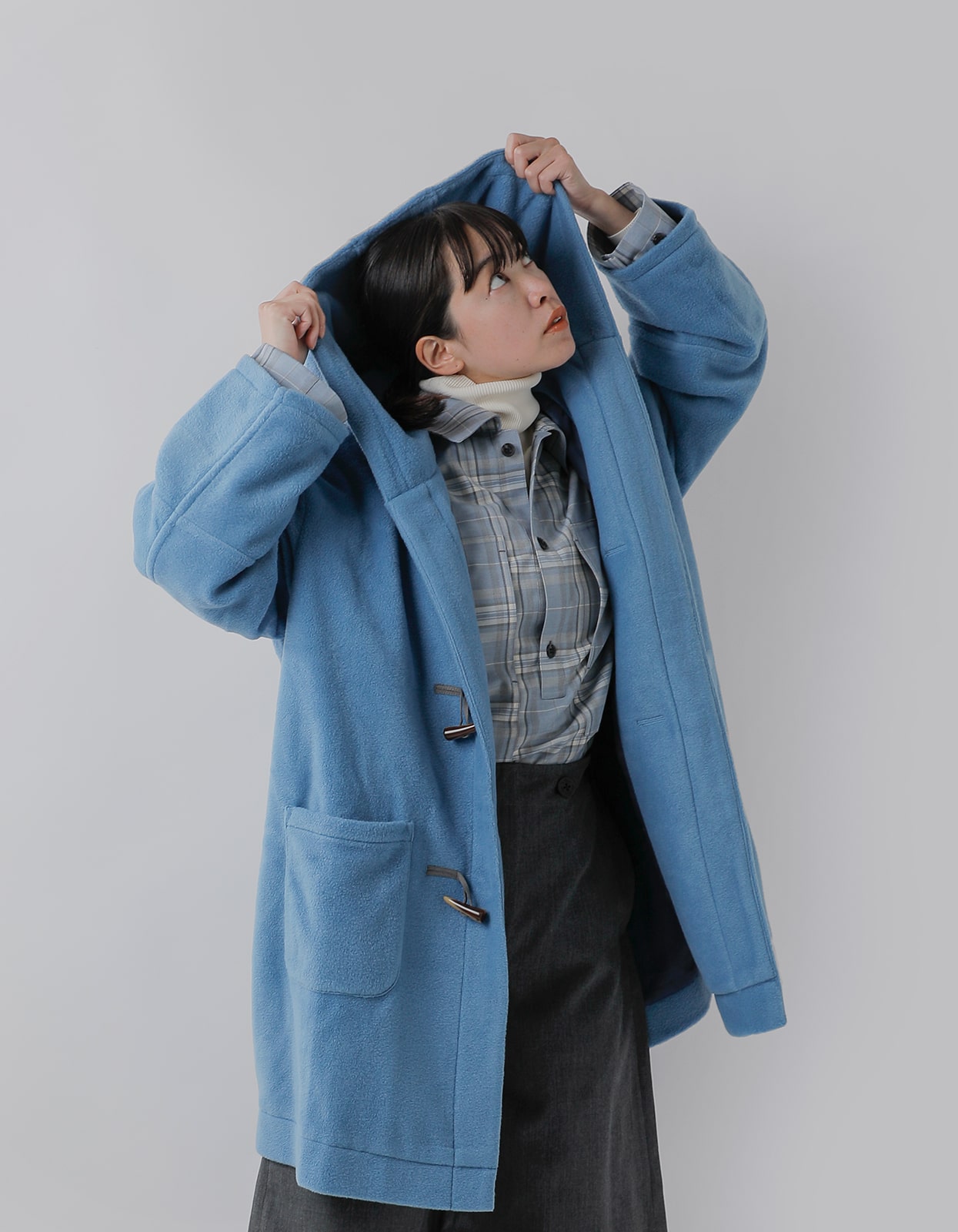 鮮やかなカラーのアウターで華やかにまとめるkelenケレンのLIZZIE。 フリース素材でダッフルの形が柔らかな印象だからこそ、この色味でも派手にならずに着用できる1枚です。肩を落とした抜け感のあるシルエットでオーバーサイズなのでどんなアイテムとも合わせやすいコートです。