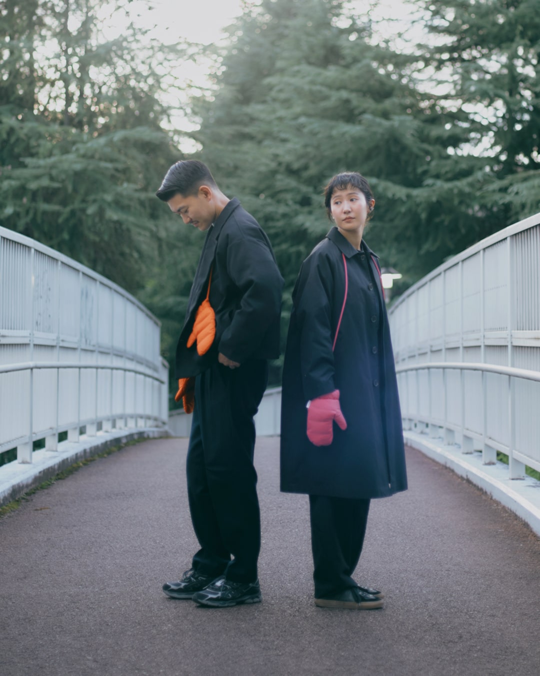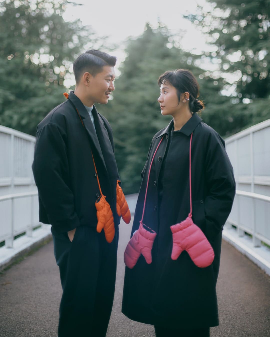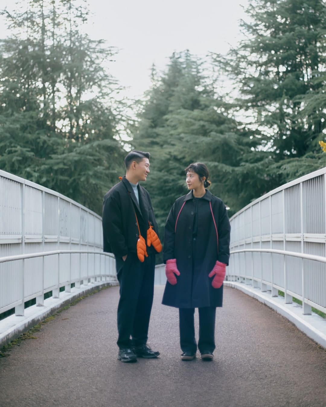 ふたりのコートの形は違いますが、同じコートの色(ブラック)とおそろいのミトンで、いい感じのカップルコーデに仕上がったと思います!