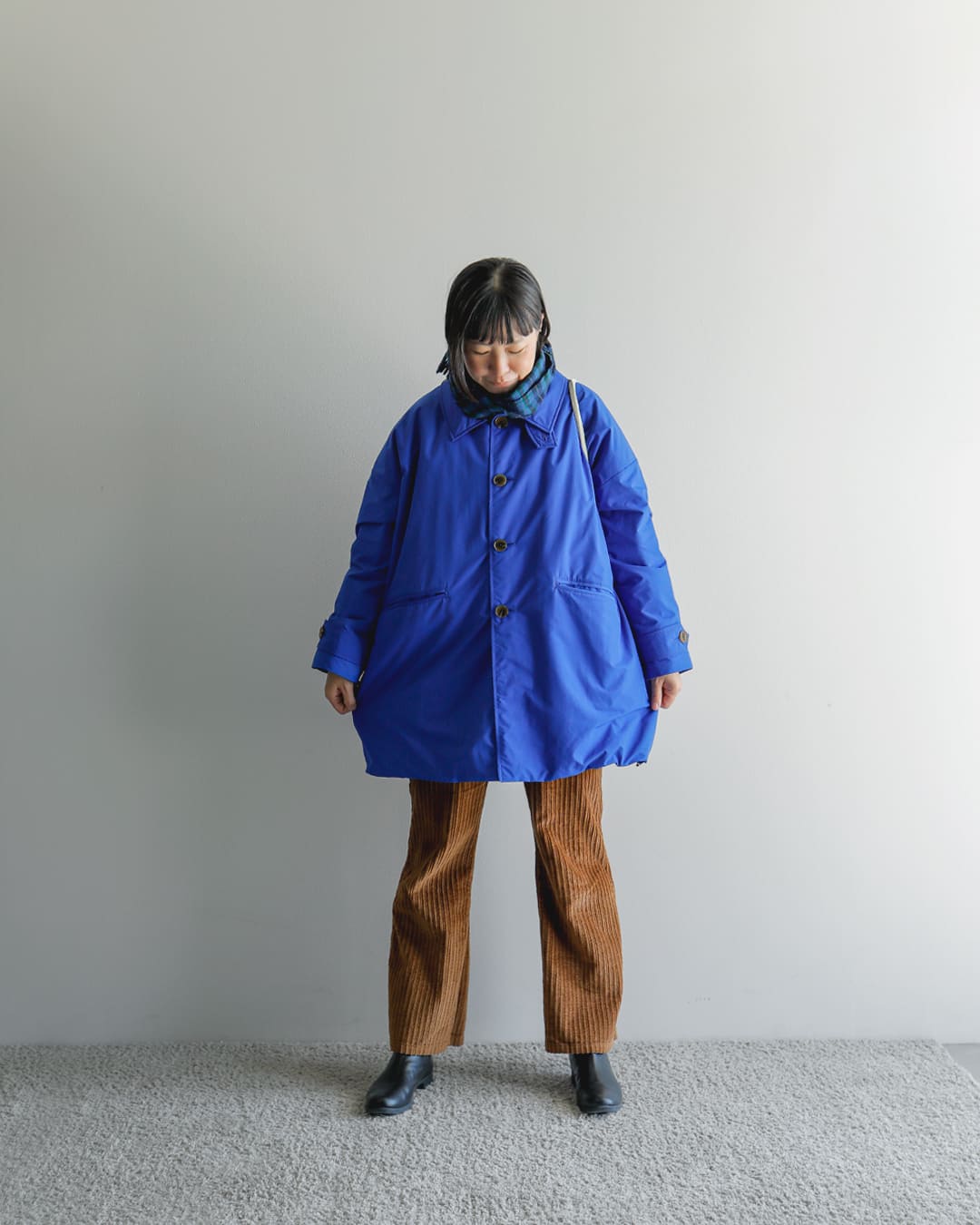 私は上半身にボリュームがあるものを持ってくるのが苦手で…。ダウンウェアにも苦手意識があったのですが、こちらは普段から好んで着用するバルマカーンタイプの型でボリュームもすっきりと抑えられているので、他の愛用のアウターと同じ感覚で取り入れられると思ったからです。