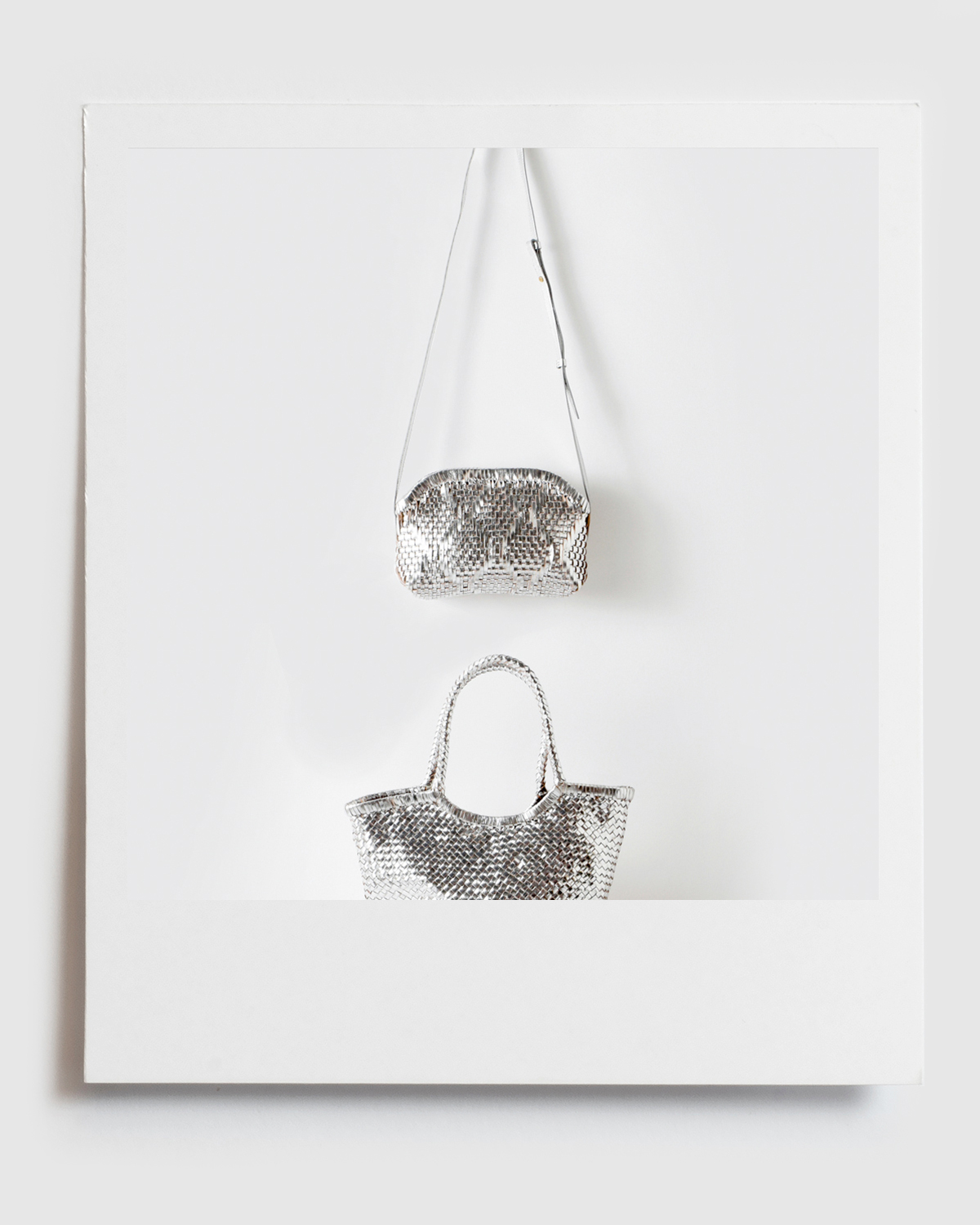 軽量で丈夫なゴートレザーを使用したトートバッグ。トレンド感のあるシルバーカラーがモダンでスタイリッシュな印象を与えます。たっぷりと収納できるシンプルな形状のトートバックで、シルバーの編み目の生地感がリゾートシーンにも活躍間違いなしです。 |
