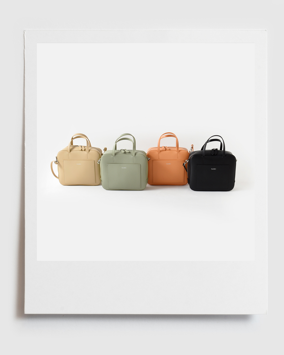 動物由来の素材を使用しないヴィーガンレザーを使用したサスティナブルな逸品。埋込み型のハンドルは面に縦のIラインのステッチがアクセント。オケージョンシーンでも使いやすいデザインです。 |