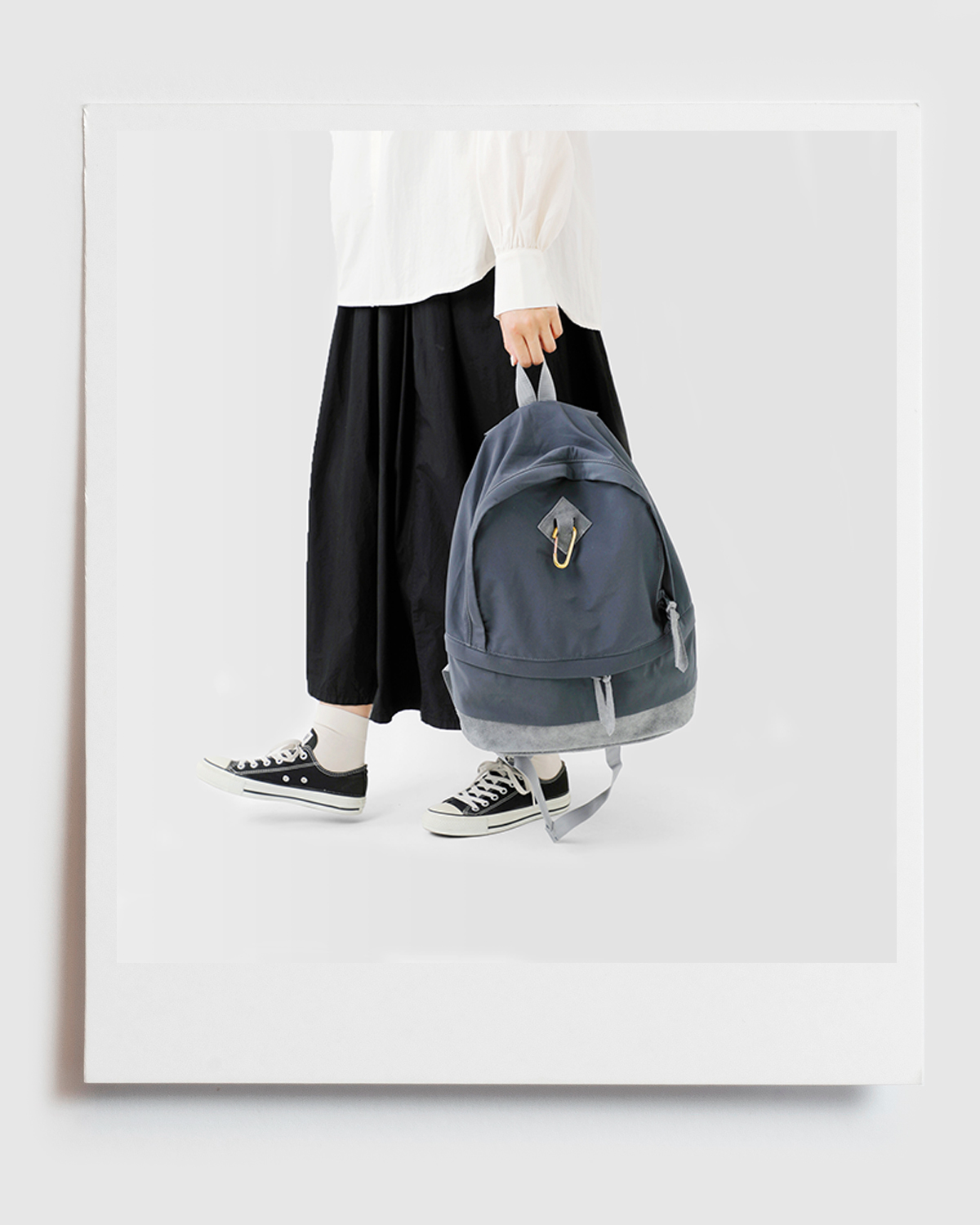 くったりとしたナイロンに、同系色でスエードを切り替えたデイパック。高級感もあるので、きれい目の装いにもよく馴染みます。ヴィンテージライクな配色も好印象。 |