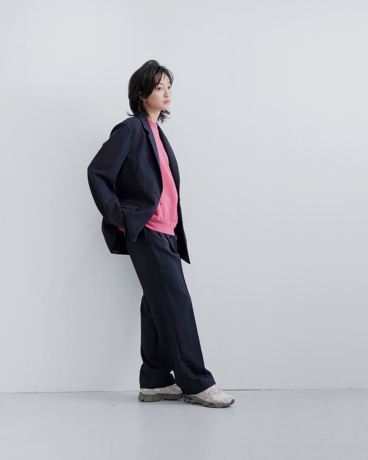 アウターでもう一つ要注目のアイテムがテーラードジャケット。正統派のアイテムですが、今年はきっちり過ぎないほどよく力の抜けたゆるめシルエットが大本命。薄手の素材を選んだり、インナーにヴィンテージライクなアイテムをチョイスしてラフに着崩すのがポイントです。