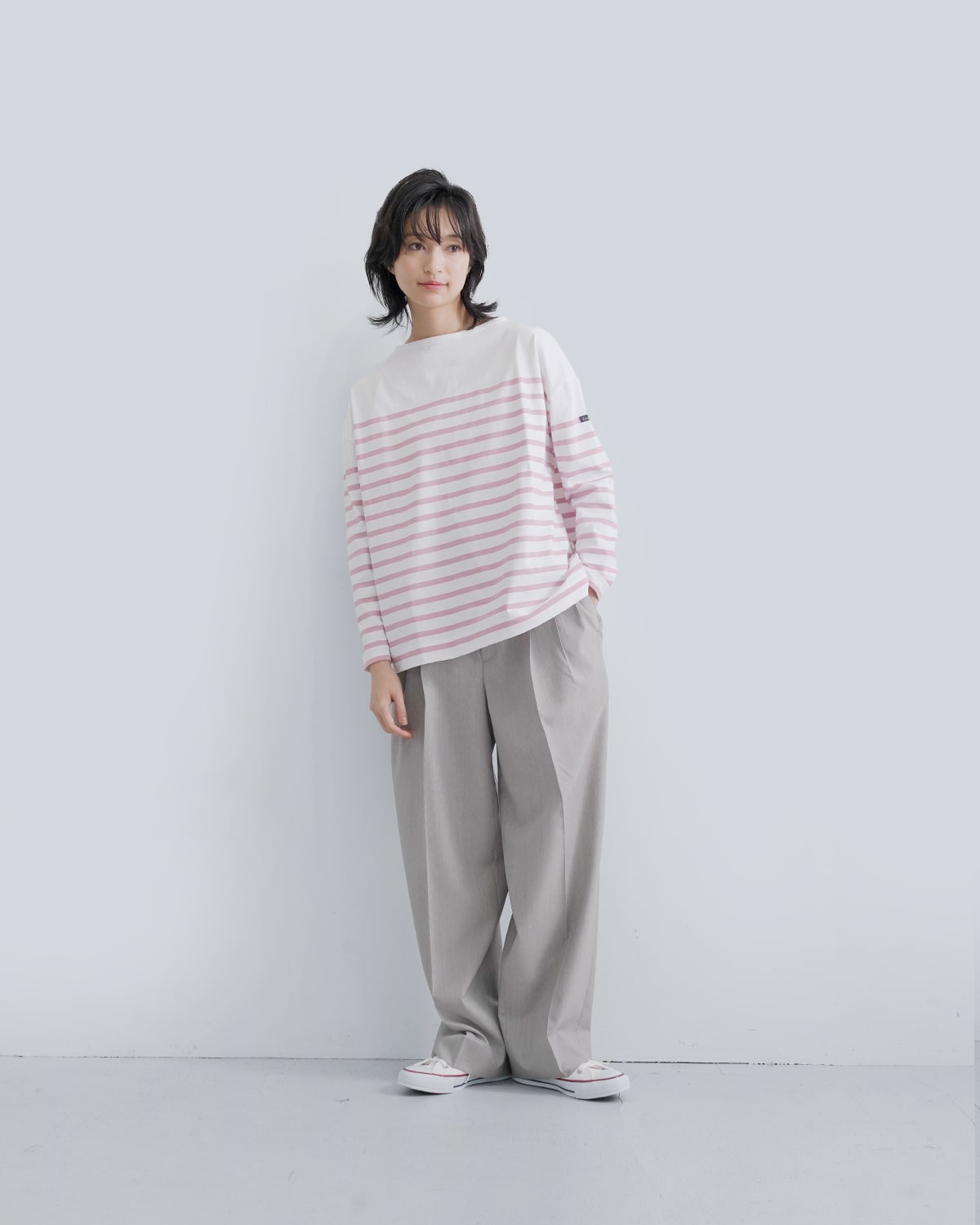 ブルーの他にもう一色おすすめしたのがピンク。ヴィヴィットな色味はコーディネートの主役に、淡い色味はさりげなくかわいらしさを加えてくれます。ライトカラーのアイテムと合わせる事で、春らしい清潔感に華やかさを両立させた着こなしが楽しめます。