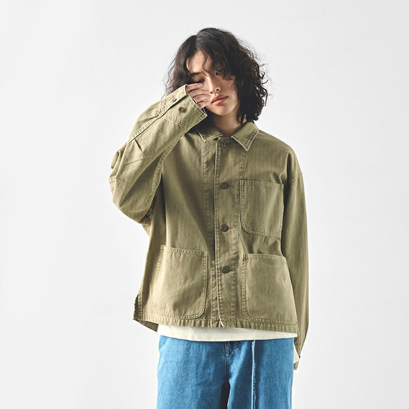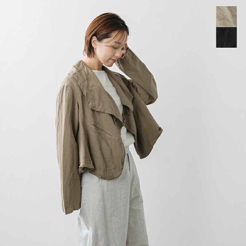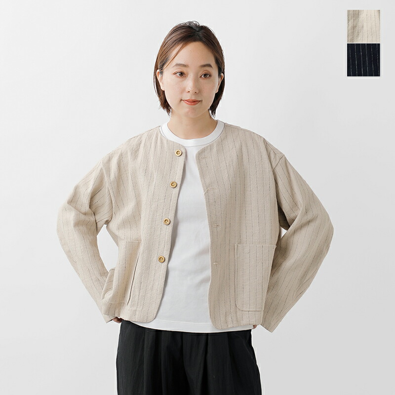 TRAVAIL MANUELのシンプルでありながら素材感に特徴のあるデザインが魅力的なデニムジャケット。 コットンとリネンの混紡素材で、軽やかで涼しげな仕上がり。 デニム風のしっかりした生地感ながらも柔らかさがあり、春夏にピッタリ。