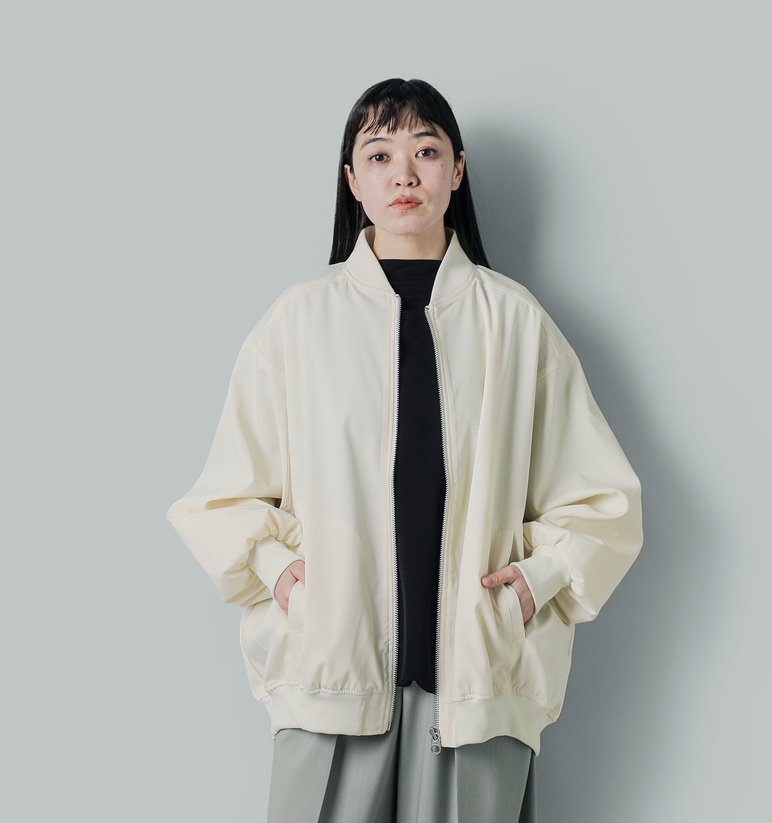 COGTHEBIGSMOKEのオーバーサイズ長袖ブルゾン。その名の通り、ふんわりと膨らみをもたせたオーバーサイズのフォルムが印象的。後ドライタッチでシワになりにくい素材なのも嬉しいポイント。デニムやパンツでメンズライクにもちろん、ワンピースとの外しにも◎。