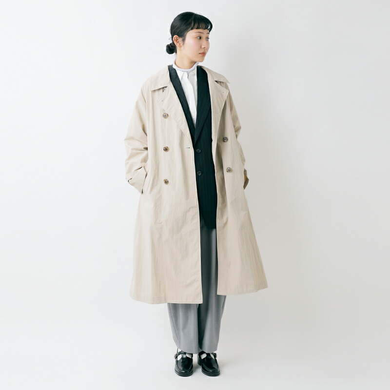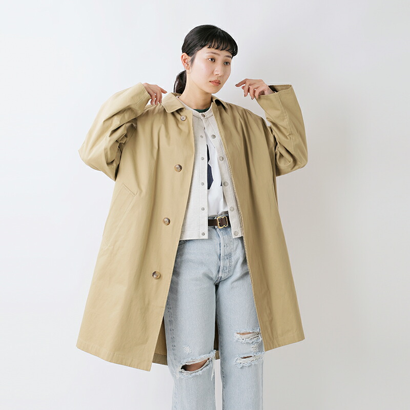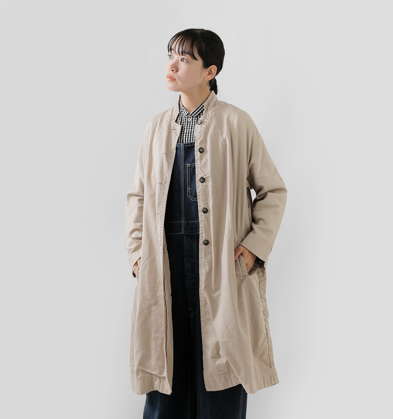 Veritecoeurの人気のアローコート。袖の付け根に切り替えがなく、手を広げると矢の様なラインになる事から名付けられたアローコート。着て頂くと生地が肩に沿い、綺麗なシルエットを作ってくれます。裏地のない軽い着心地で、アウターとしては季節の変わり目に丁度よい生地感です。