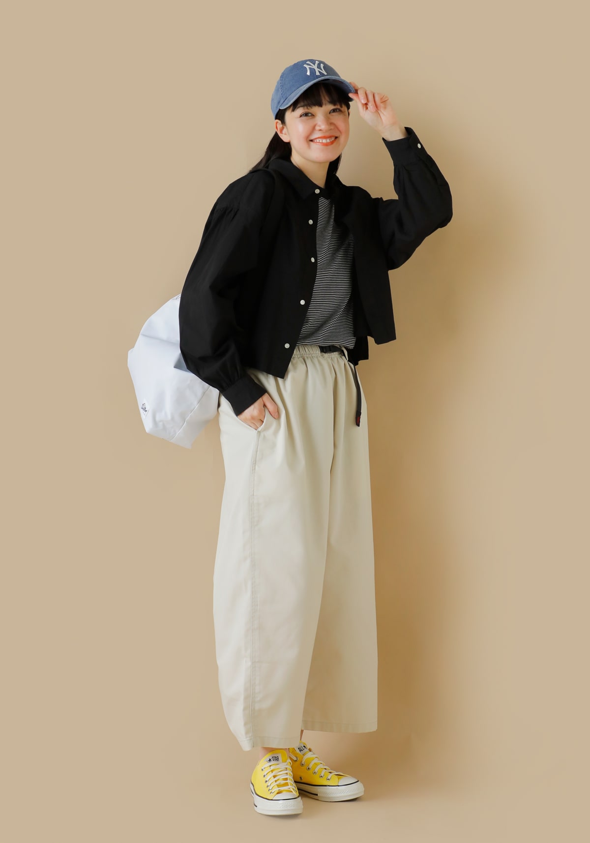 トレンド感を出すのに最適なのがキャップ。つばの長いアイテムを選ぶと日除け対策をしつつ印象的なスタイリングに仕上がります。今期は大人カジュアルなデザインや素材感にこだわった無地のシンプルキャップが充実しています。