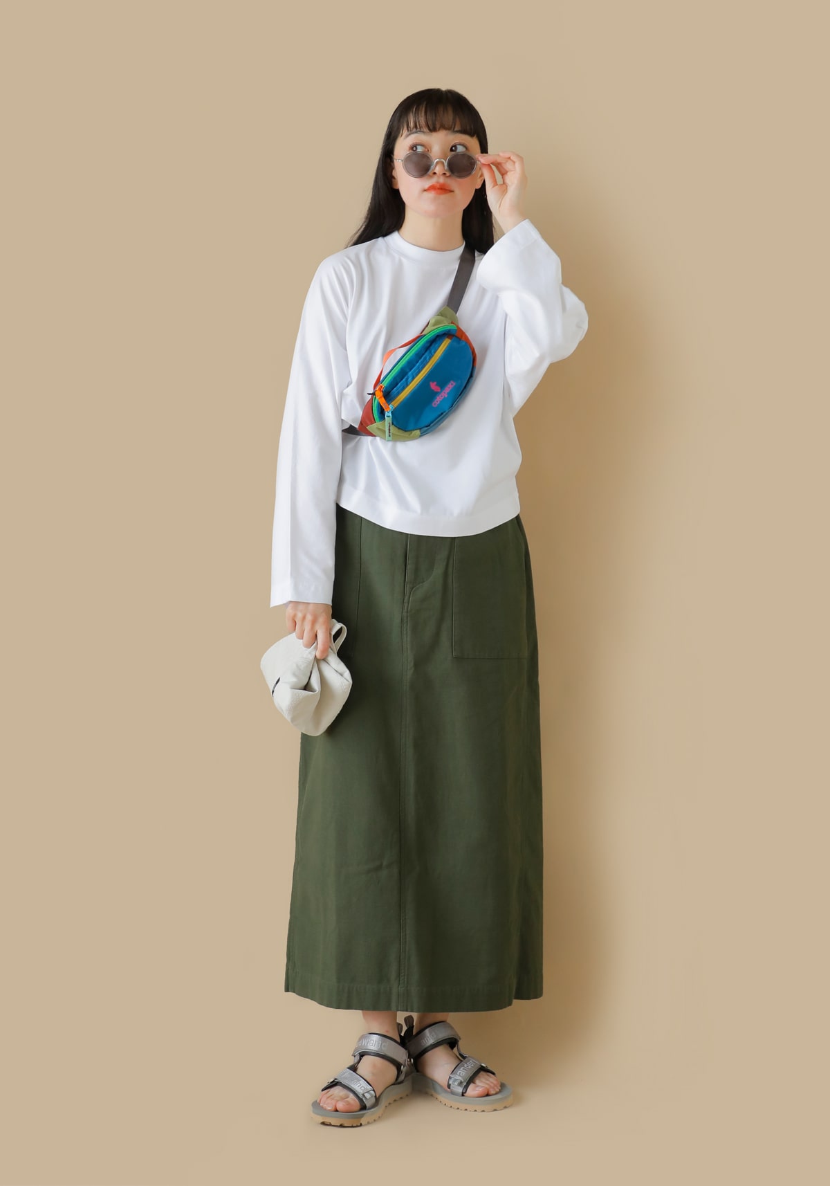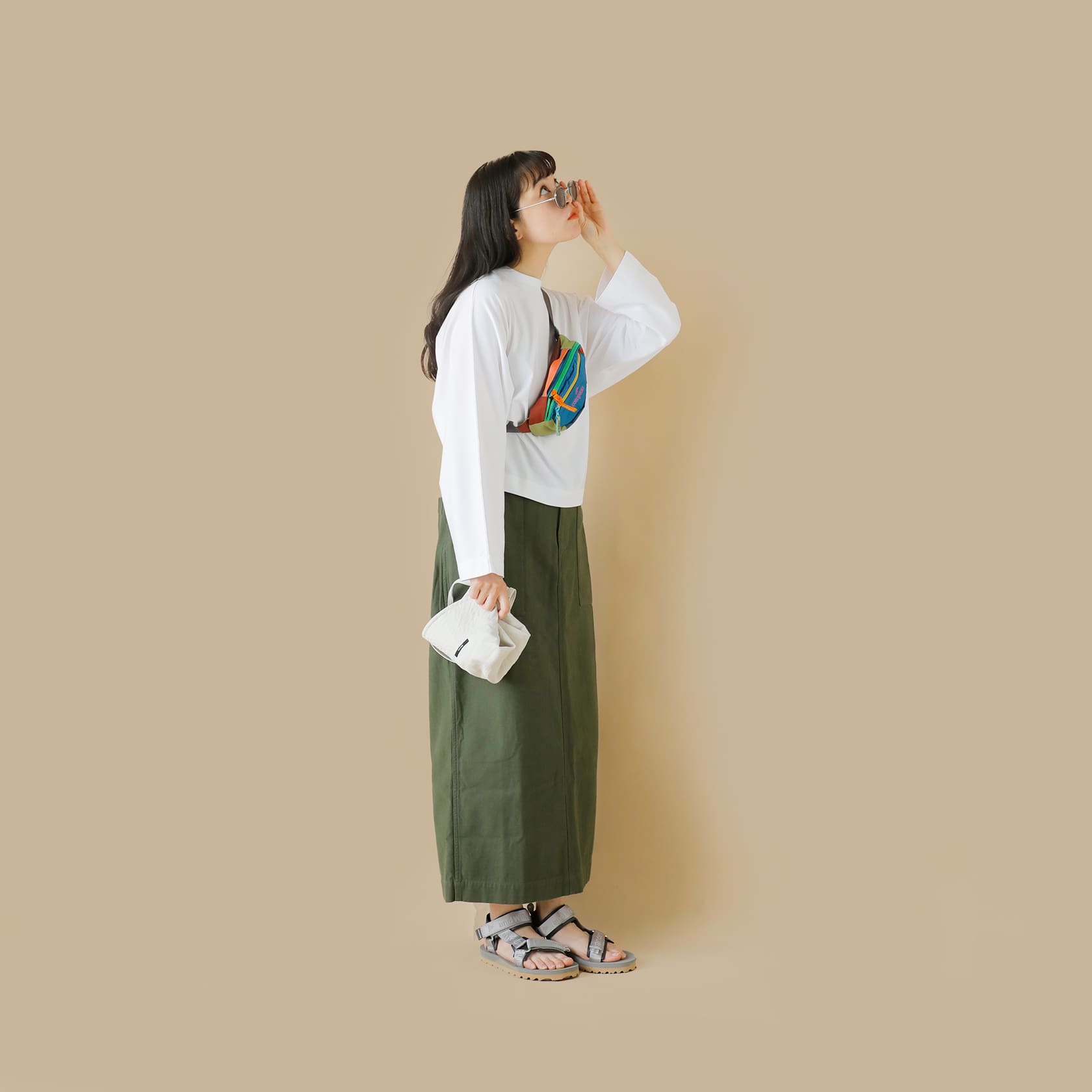 日差しの強い屋外では肌をカバーするロンTが便利。Tシャツ自体にUVカットや速乾効果がある高スペックのアイテムも続々と登場しています。一枚でも様になる無地デザインを選んで、小物で色を加えると、こなれた公園コーデの出来上がり。