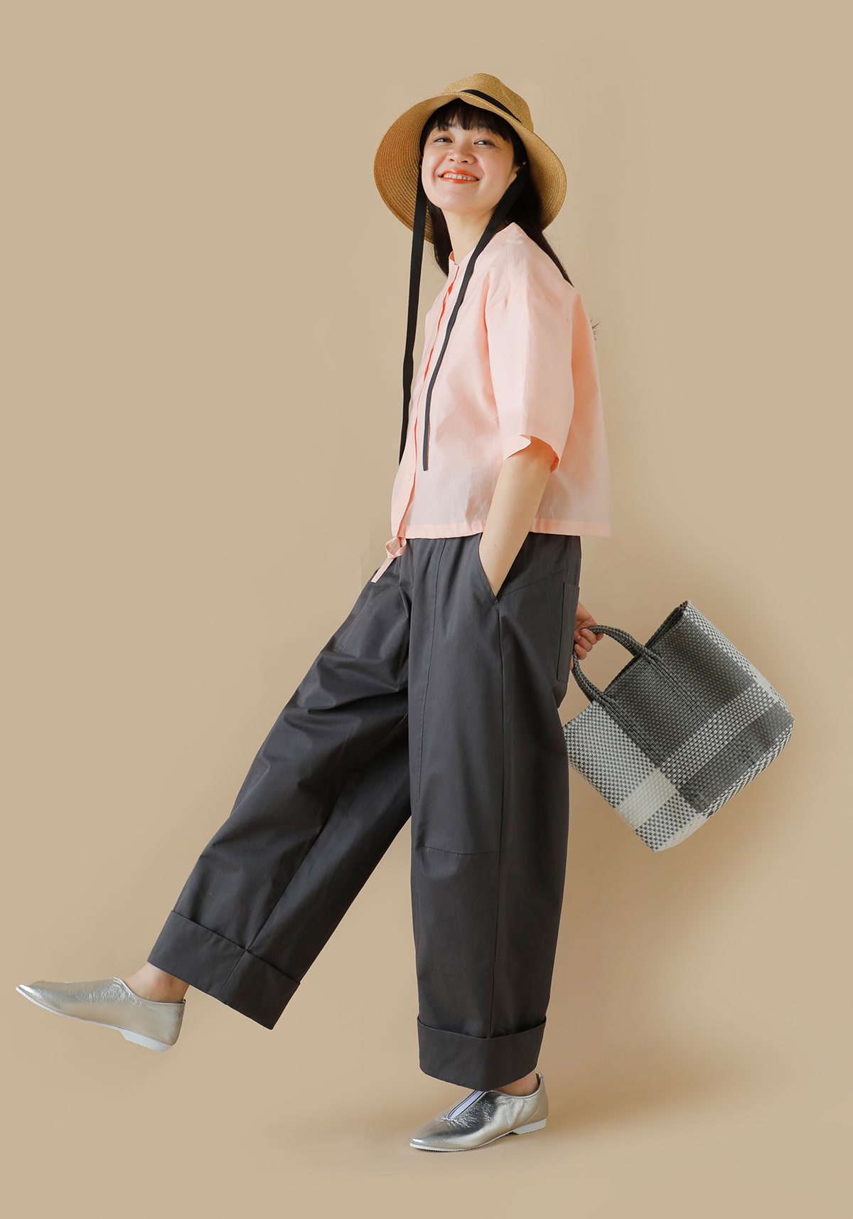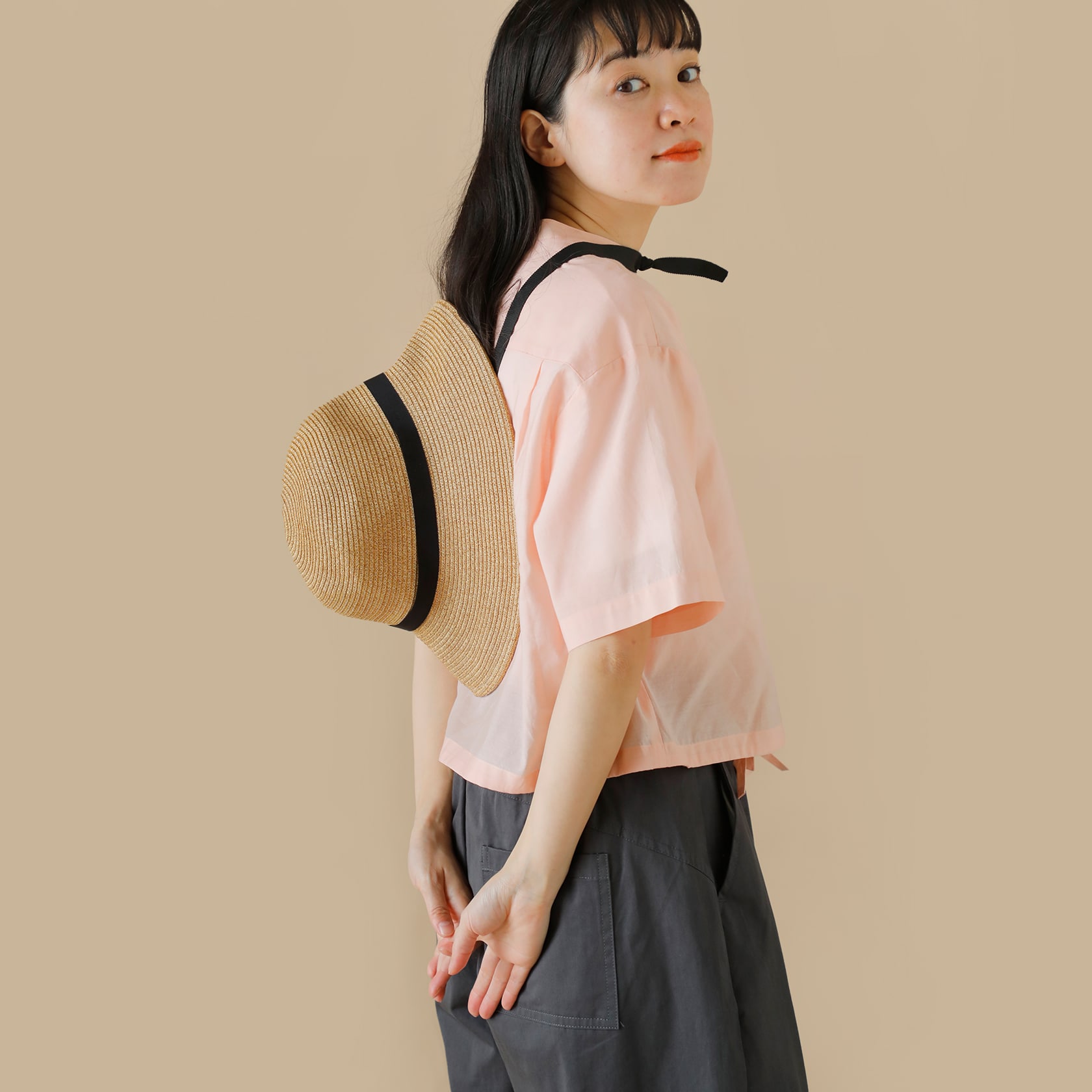 バリエーション豊富なつば広ハットはデザインやカラーが豊富。きれいめのコーデにカジュアルなデザインを合わせてみるなど、あえて外してみるのもおすすめ