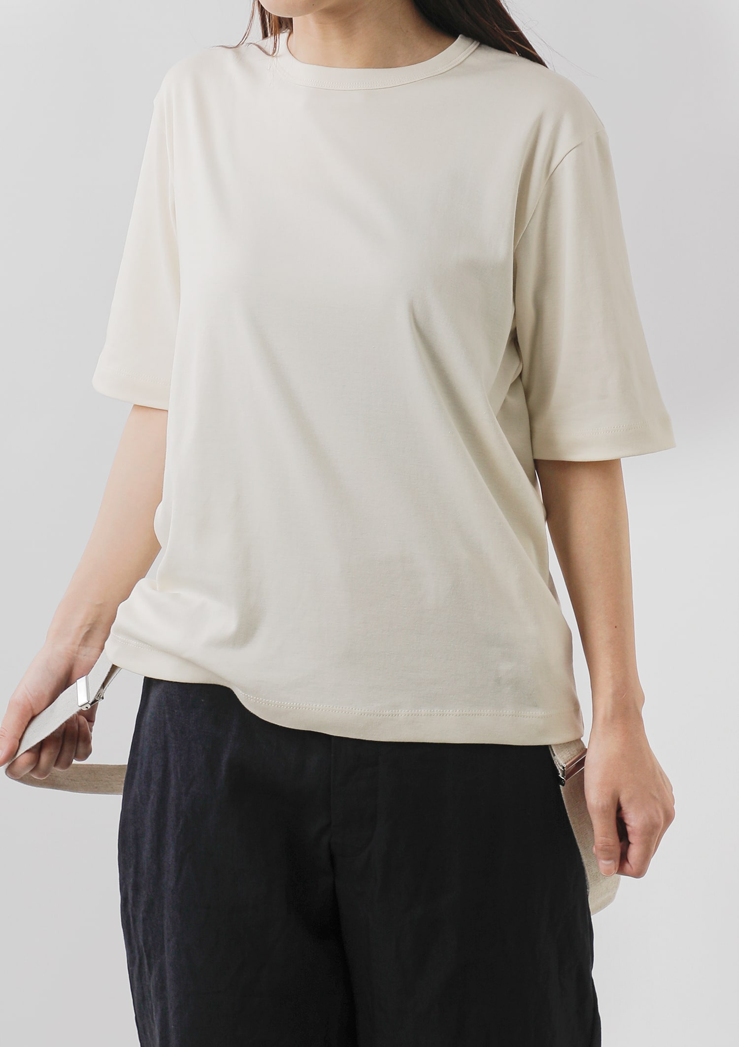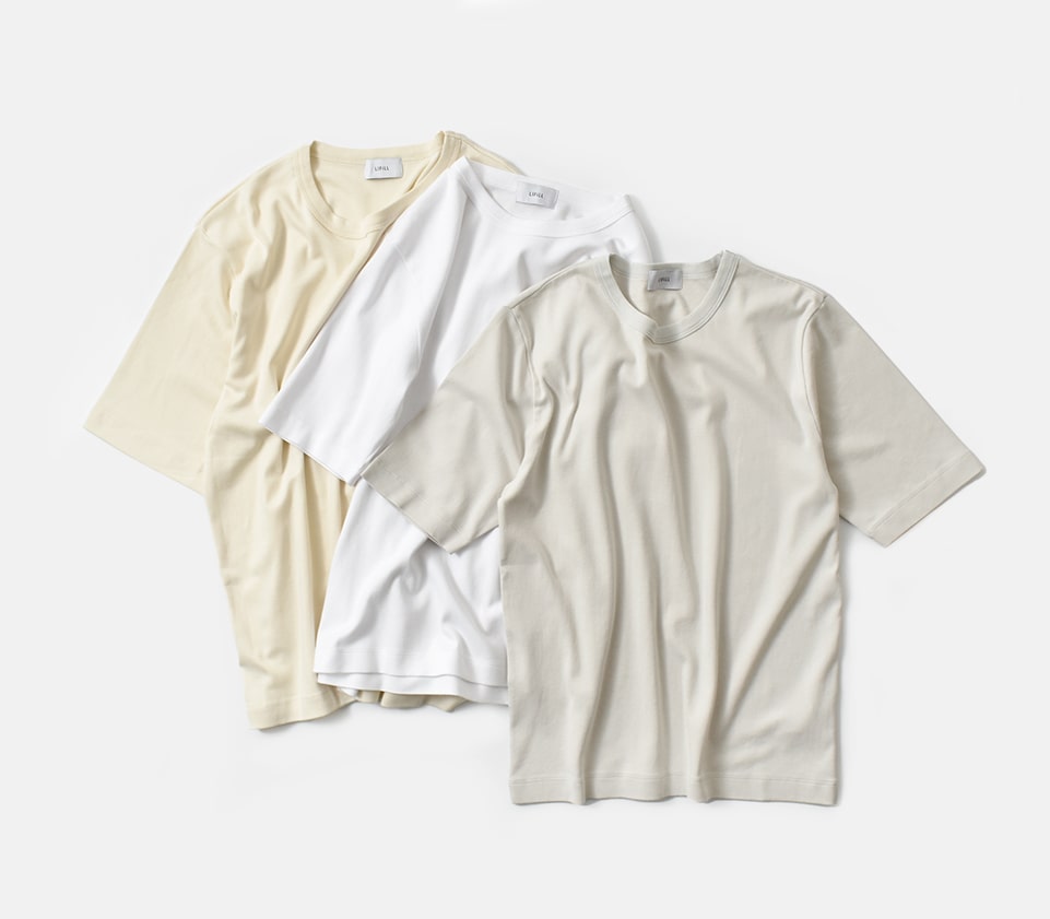 Shinzone人気のPACK TEE。レイヤードした際、首元からキレイにネック部がのぞくよう、サイズとシルエットにこだわって作ったシンプルなTシャツ。