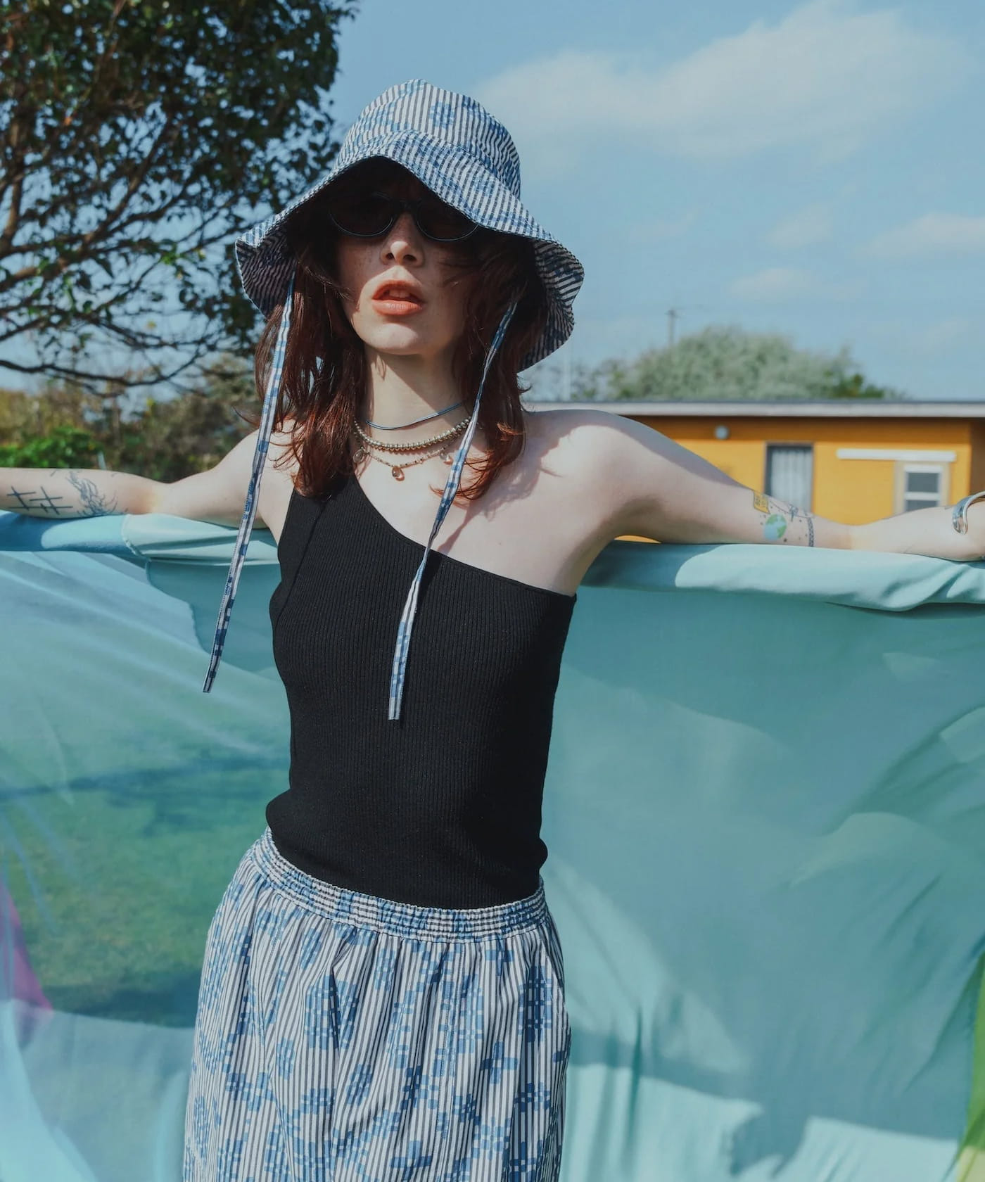 「Festival Express」カナダを⻄から東へ⾛った伝説の列⾞「Festival Express」。コミュニティの喜びや⾃由への憧れといった70年代のエッセンスに想いを馳せて⽣まれたSara mallikaの26年春夏。インドのエキゾチックなムードとのミクスチャーに心躍らせて。
