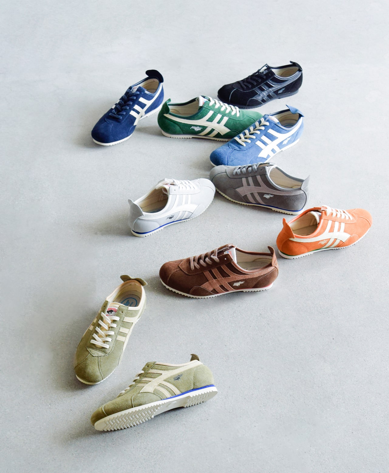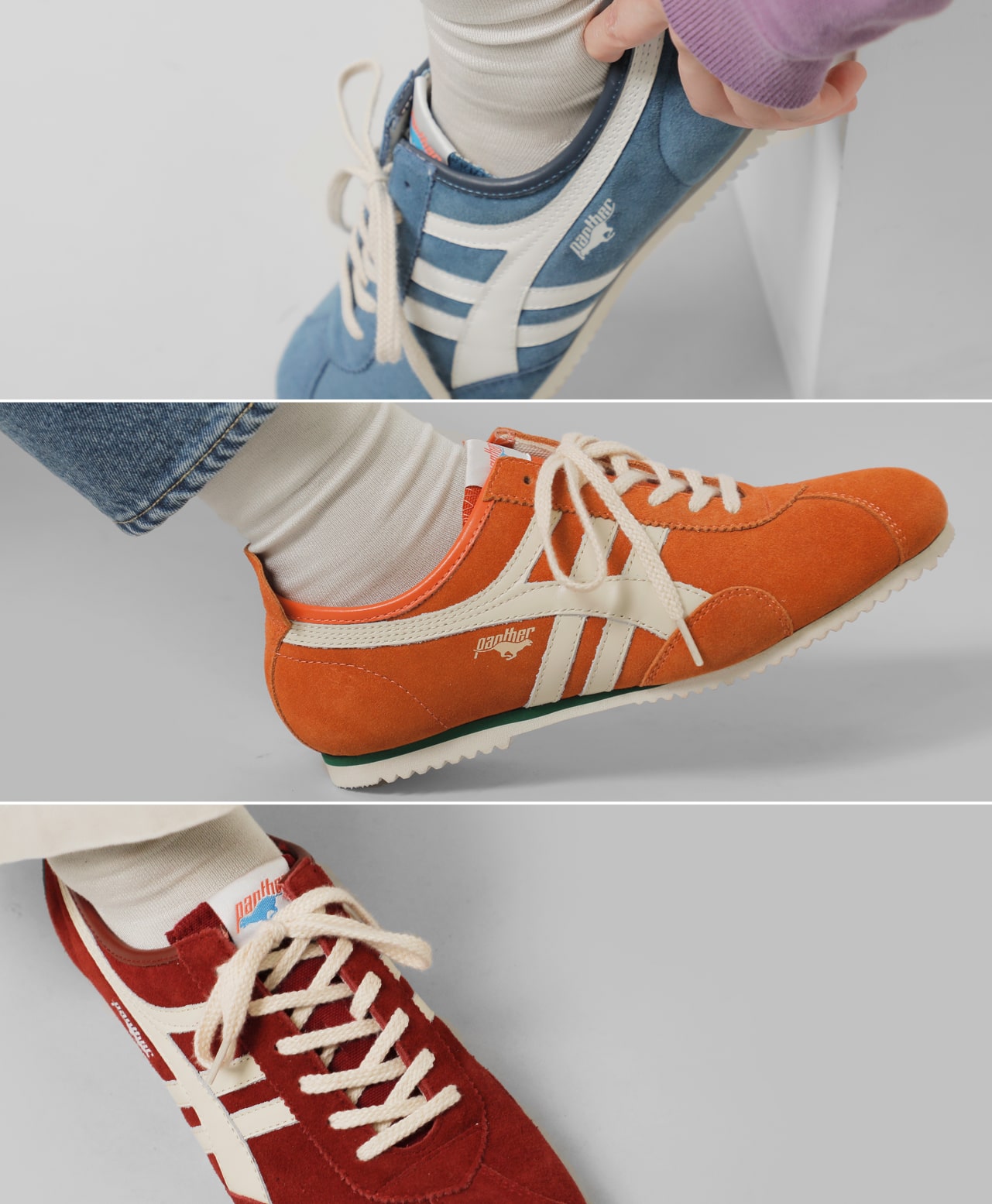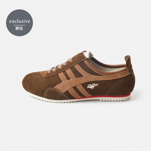 1964 年に誕生したPantherパンサー。黒ヒョウをイメージした俊敏さに溢れるデザイン性と軽快なフォルムで 70 年代には トレーニングシューズの代名詞として愛用され一世を風靡。アイデンティティを継承しつつ進化を遂げながら MADE IN JAPANの繊細な行程によって復刻しました。日本が誇るクラフトマンシップにより新たな価値を具現化した Panther シリーズを展開しています。