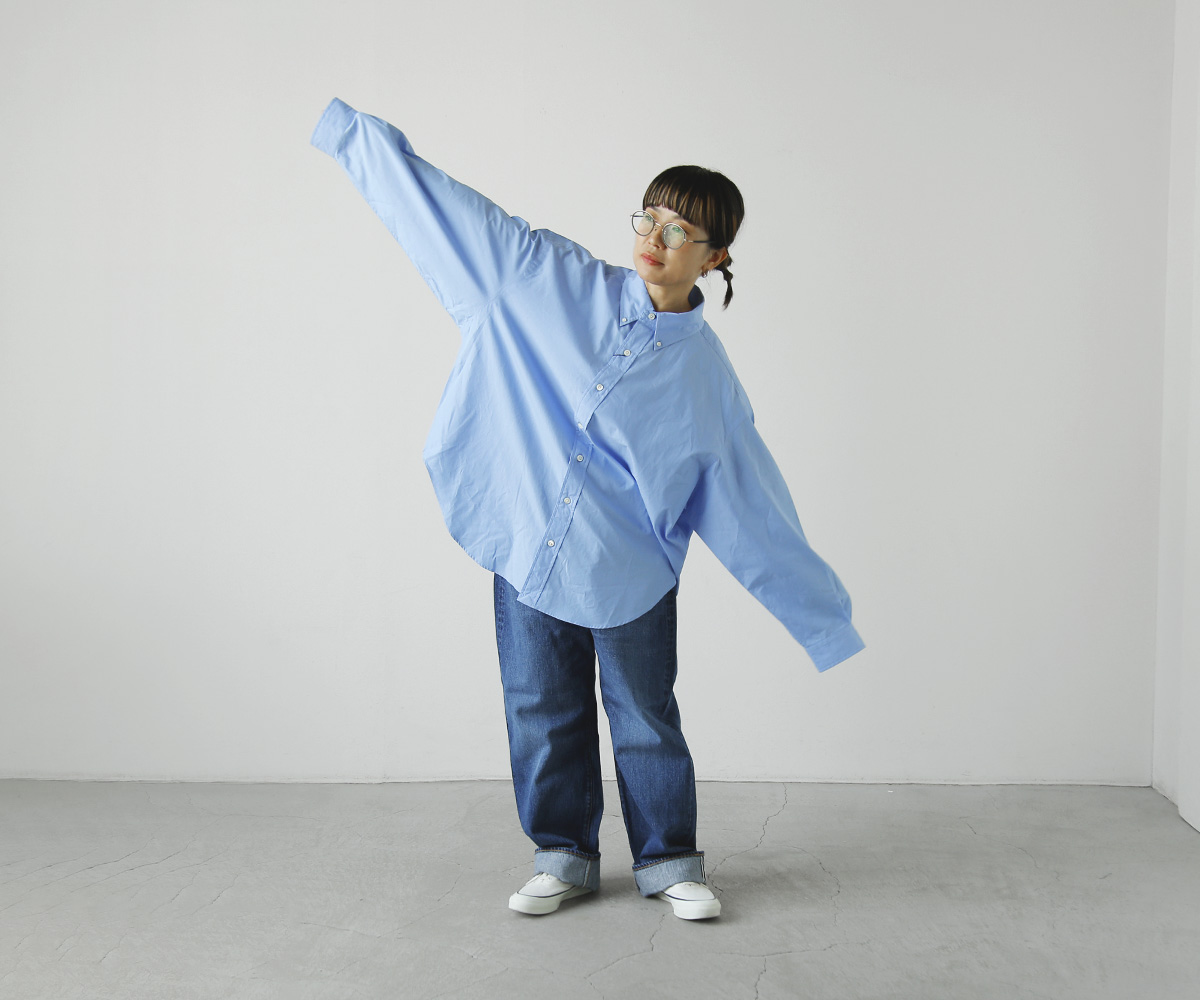 オーバーサイズのシャツ・ブラウスは引き続き人気で、Piuでも多くお取扱していますので、ぜひチェックしてみてください。今回着用していたのはgraphpaper(グラフペーパー)のものです。