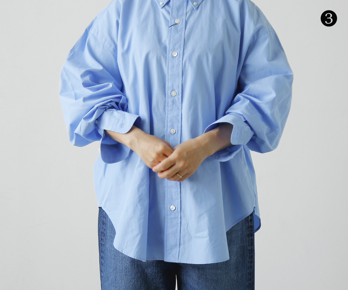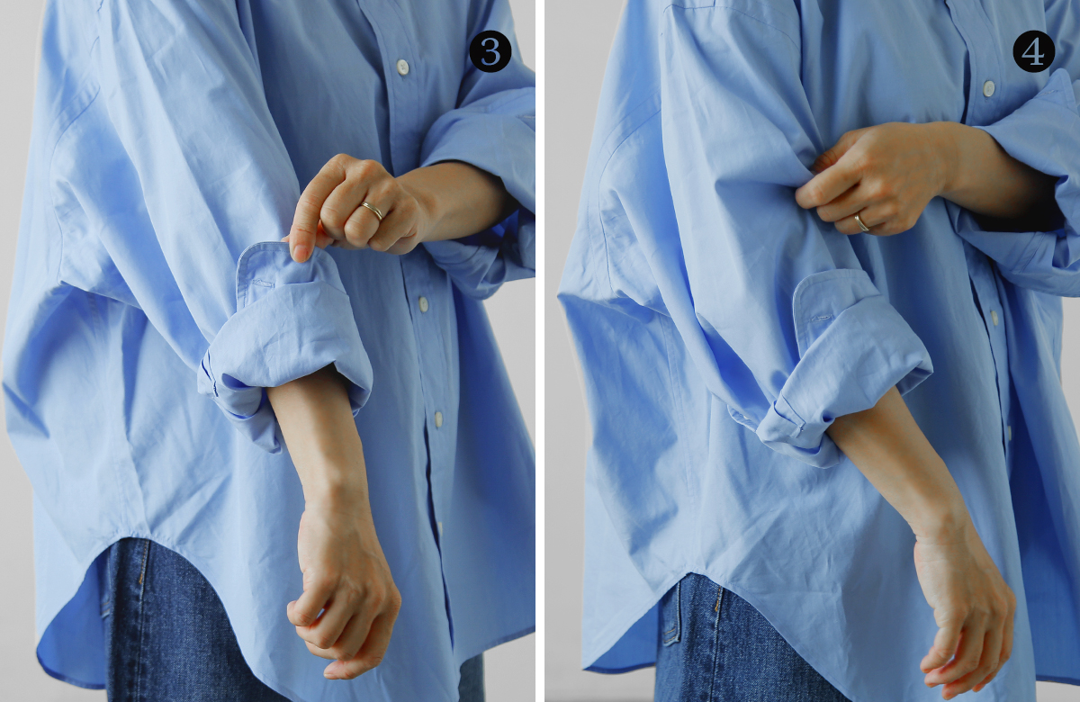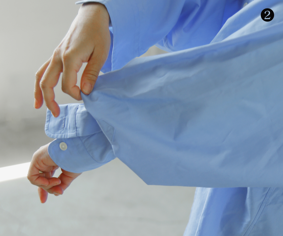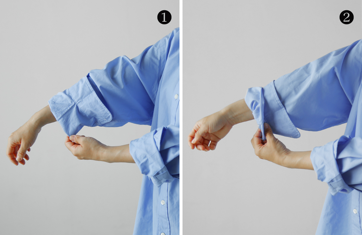 そこで今回は身長147cmと小柄なスタッフUに、普段から実際にしているお袖まくりのテクニックを教えてもらいました。シャツの着こなしの幅を広げつつ、実用的な袖まくりの方法を、ふたつご紹介いたします。