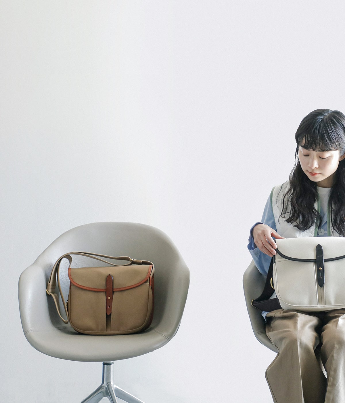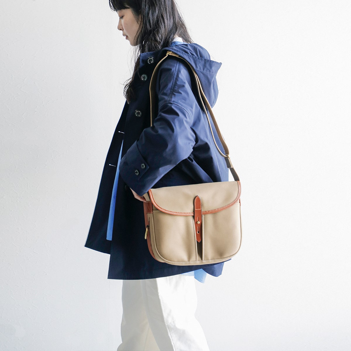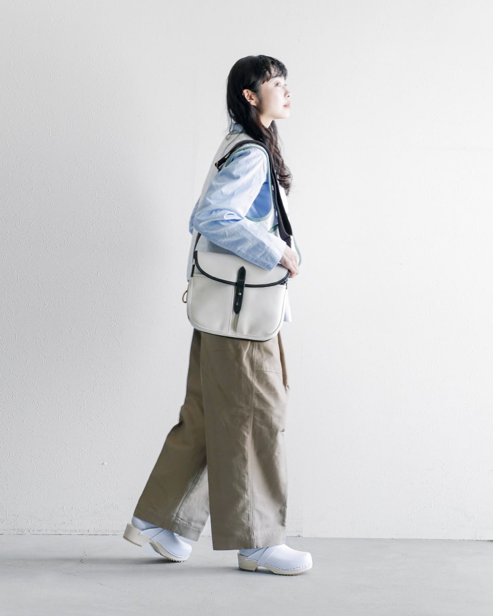 2022年よりラインナップに加わったecru。生地本来のナチュラルな雰囲気は春夏の装いによく馴染みます。こちらも英国ブランドであるラベンハムと合わせて。