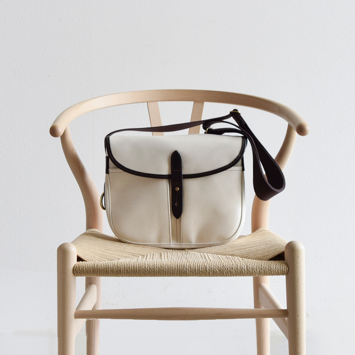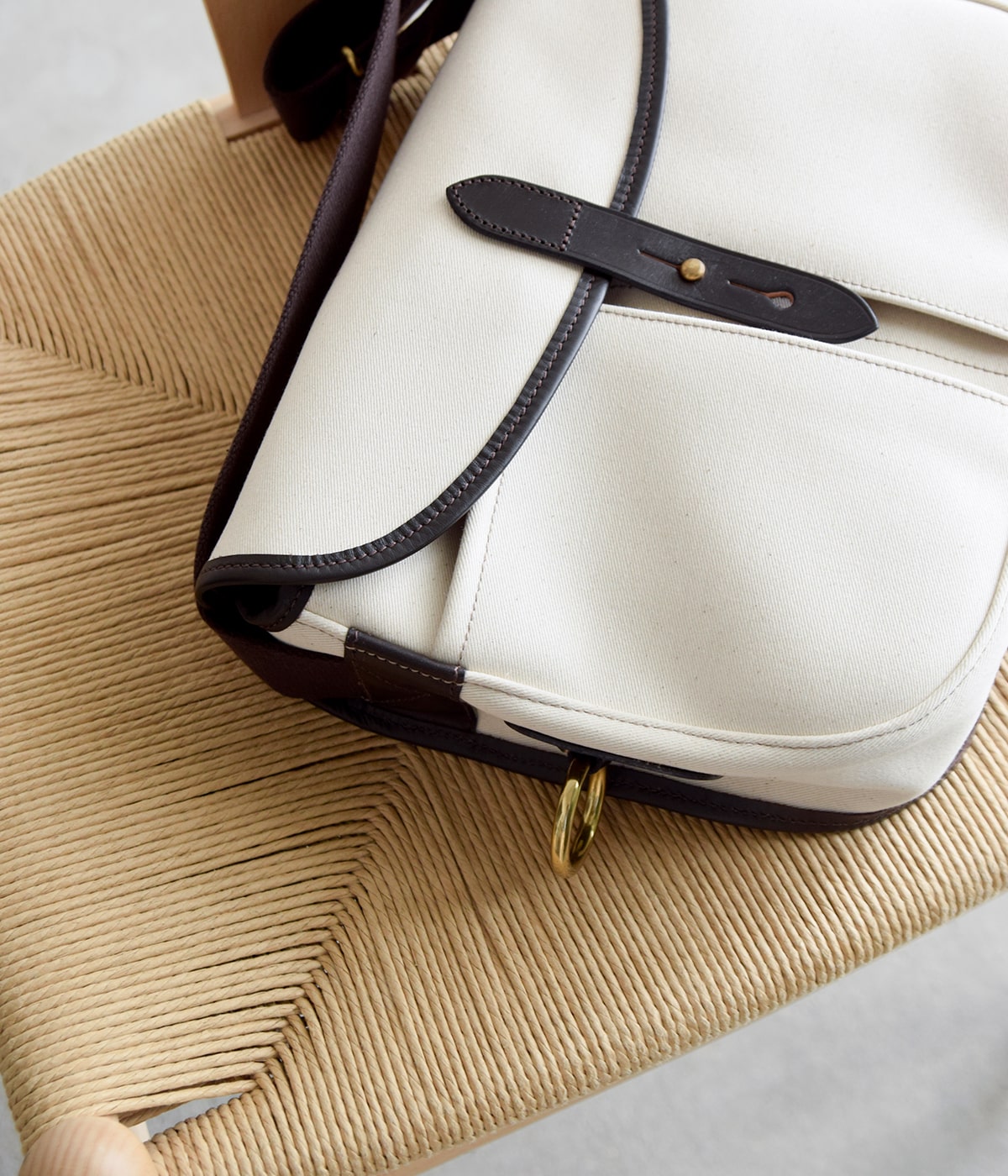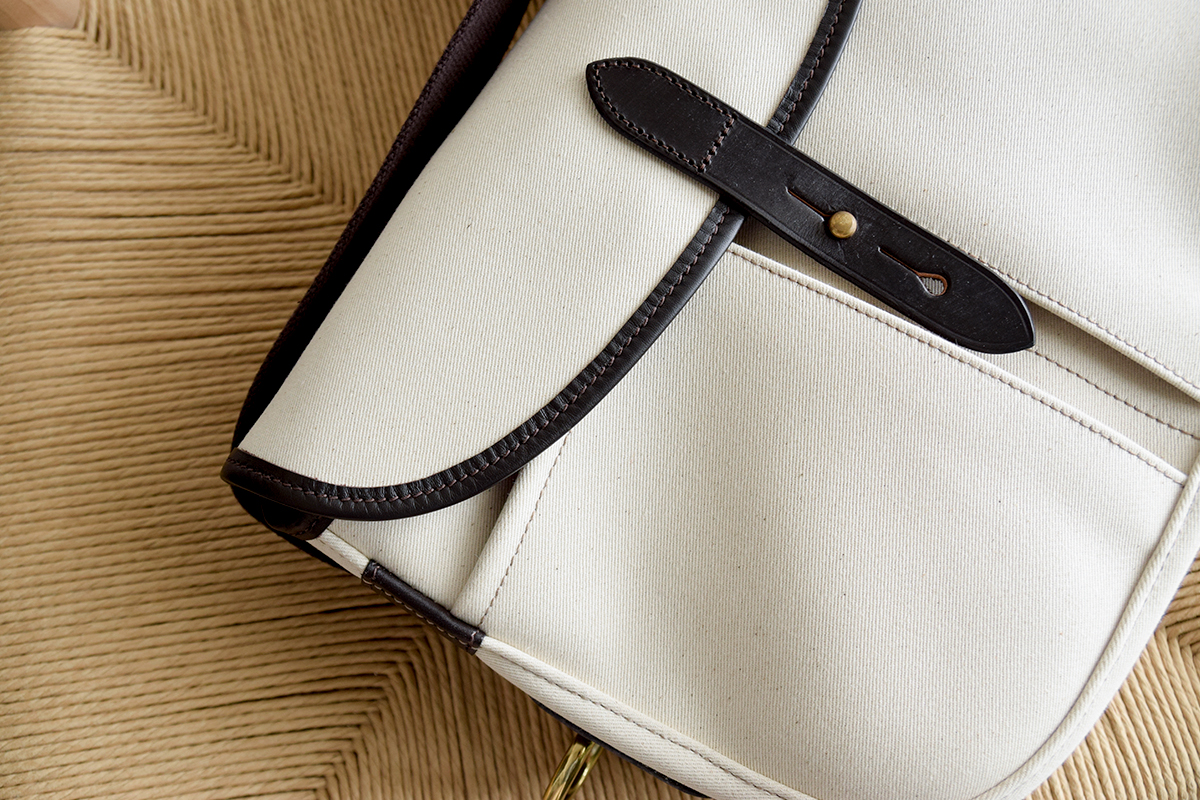 パイピングなど随所で使用されるレザーは、同じく英国を代表する「ブライドルレザー」。ロウをたっぷりと浸透させたることで耐久性が高く、馬具に使用されることの多い素材です。